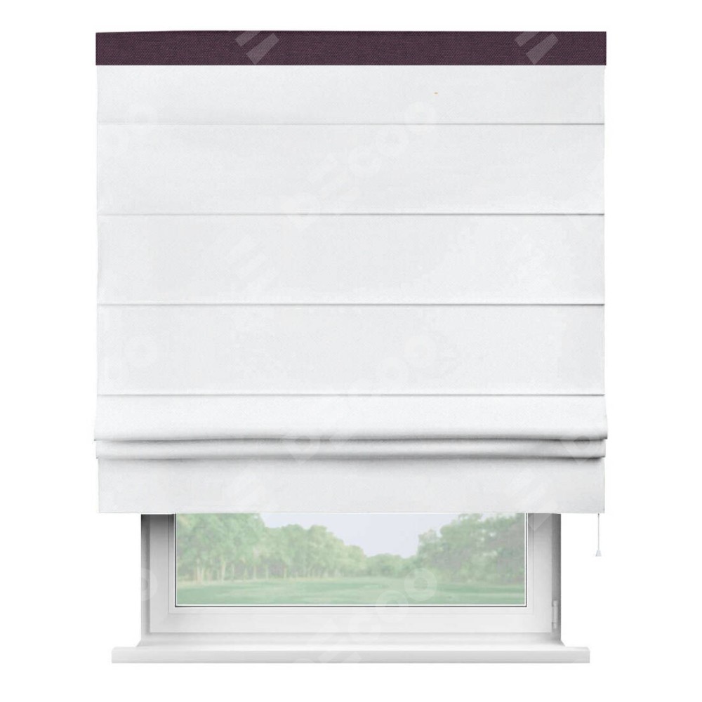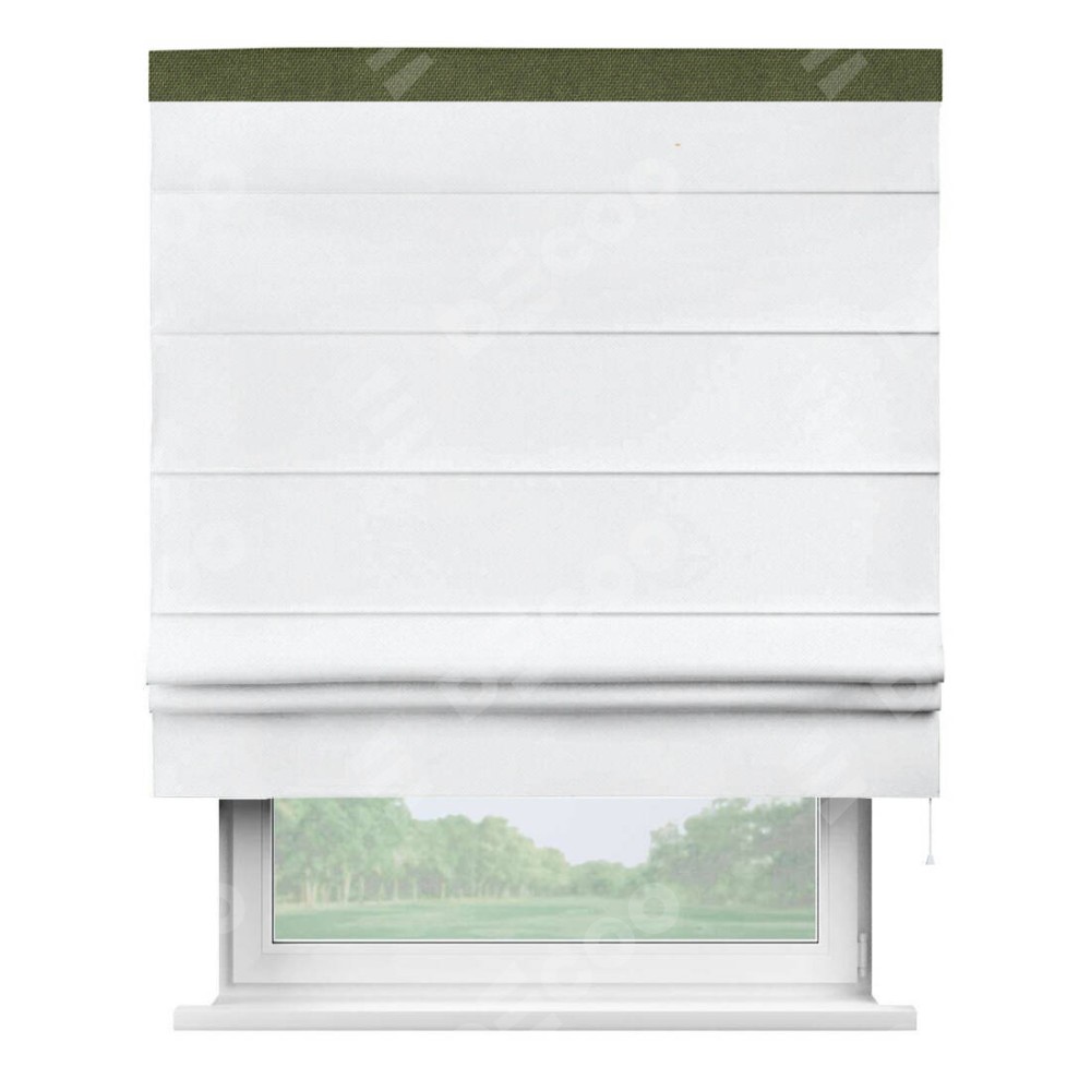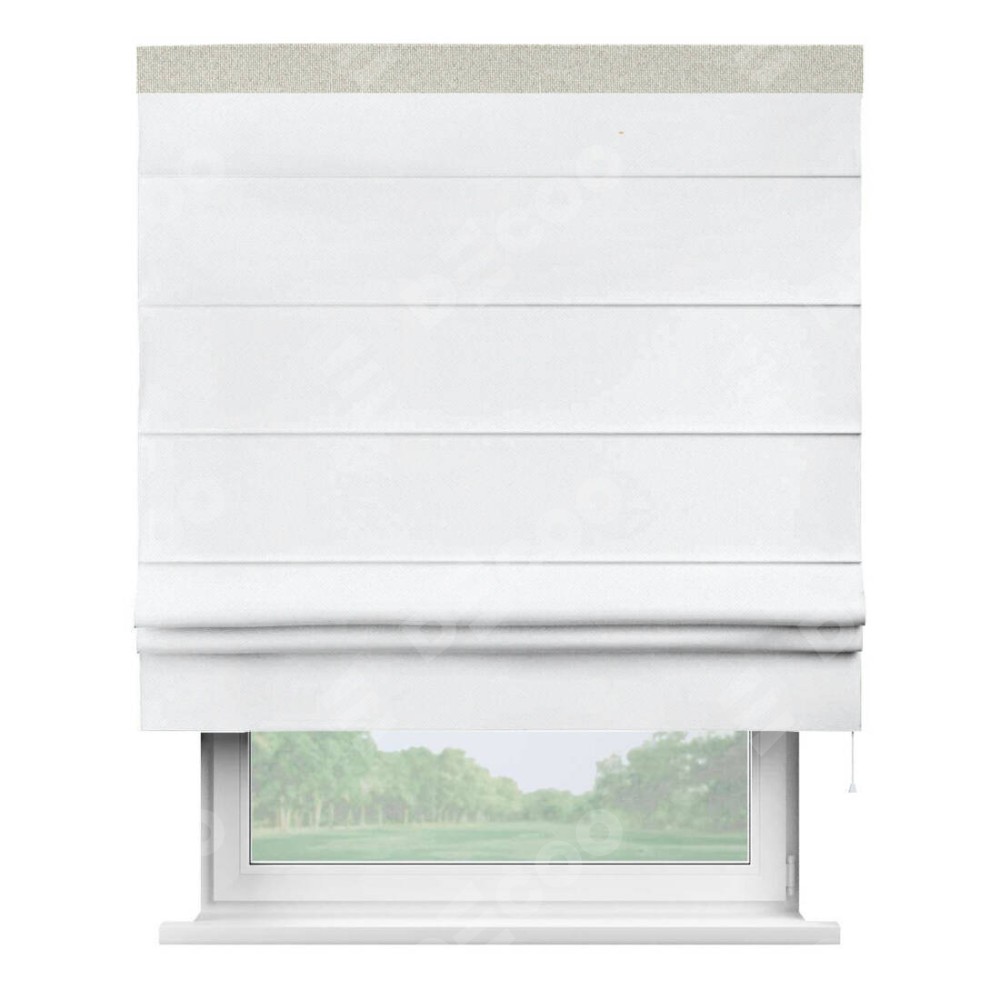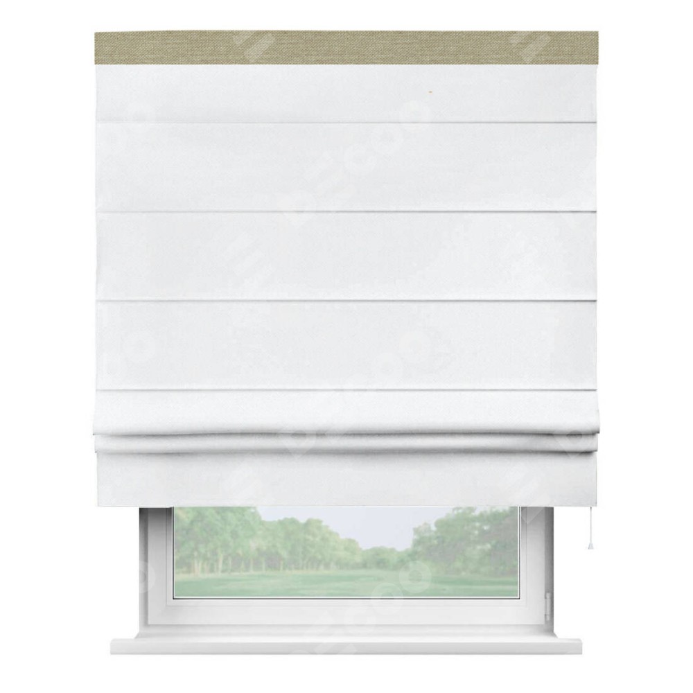 Римская штора «Кортин» для проема, лён димаут белый с кантом Кинг
