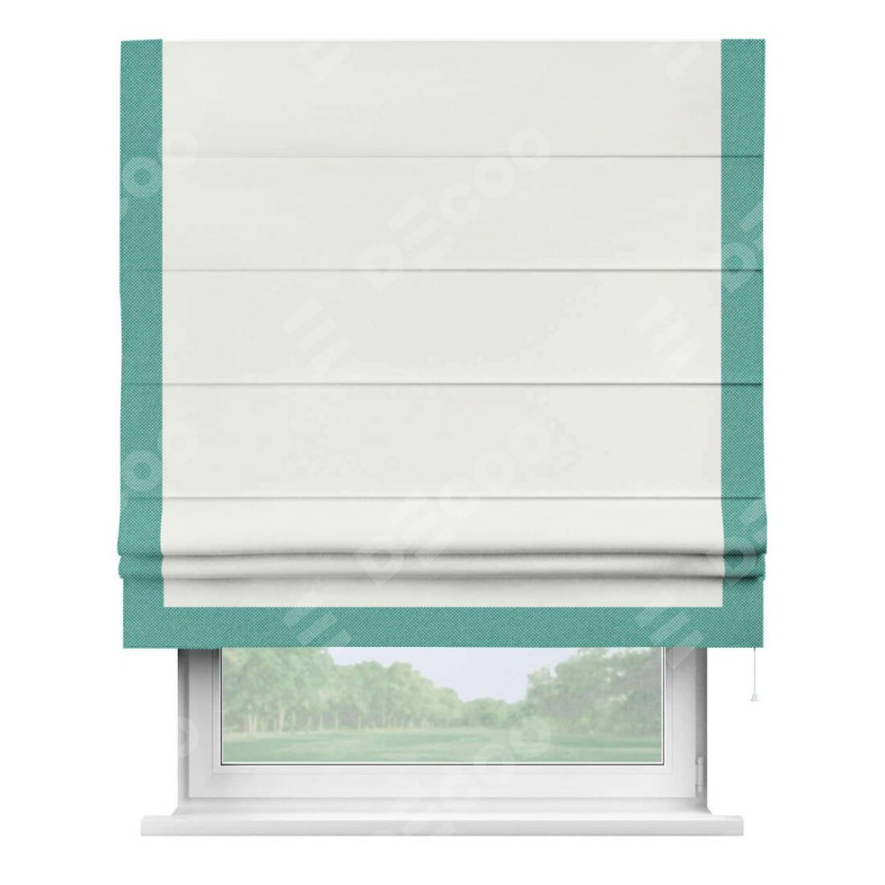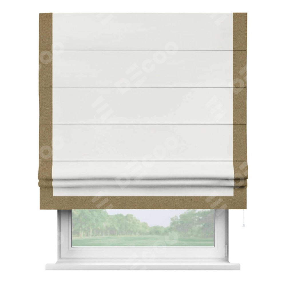 Римская штора «Кортин» для проема, лён димаут молочный с кантом Виктория
