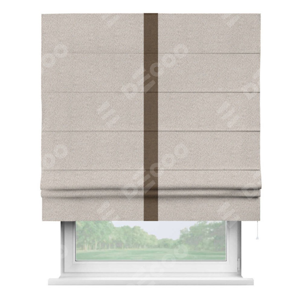 Римская штора «Кортин» для проема, лён димаут бежевый с кантом Хайвэй