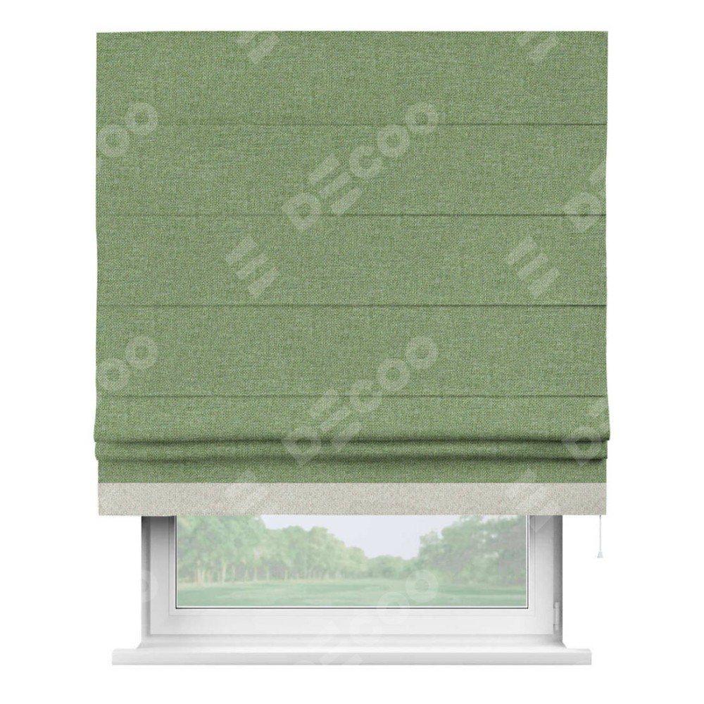 Римская штора «Cortin» для проёма, лён димаут светло-салатовый с кантом Джестер