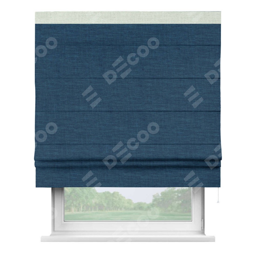 Римская штора «Кортин» для проёма, лён синий, с кантом Кинг