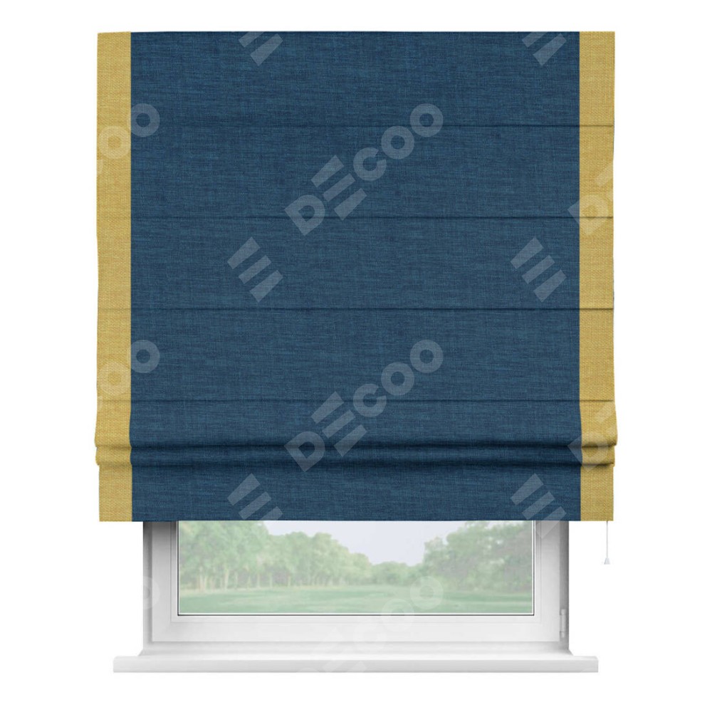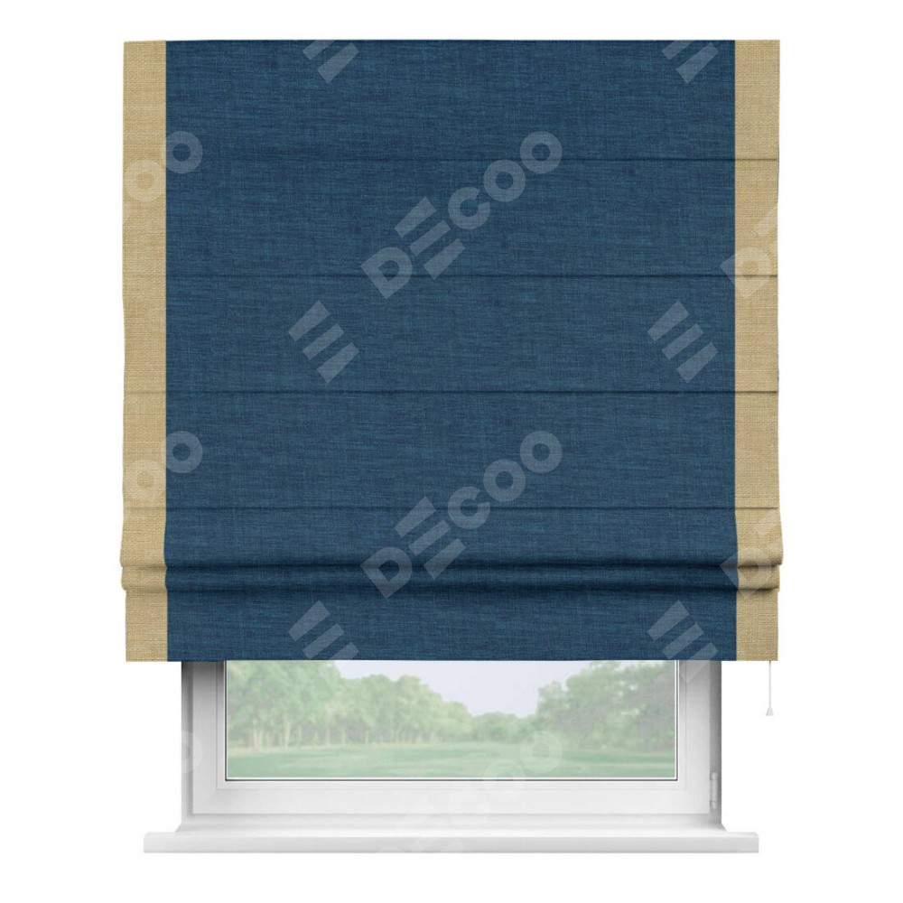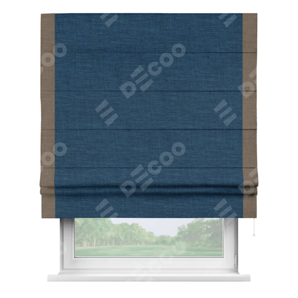 Римская штора «Кортин» для проёма, лён синий, с кантом Стрим Дуо