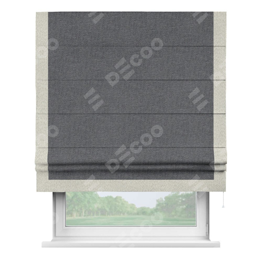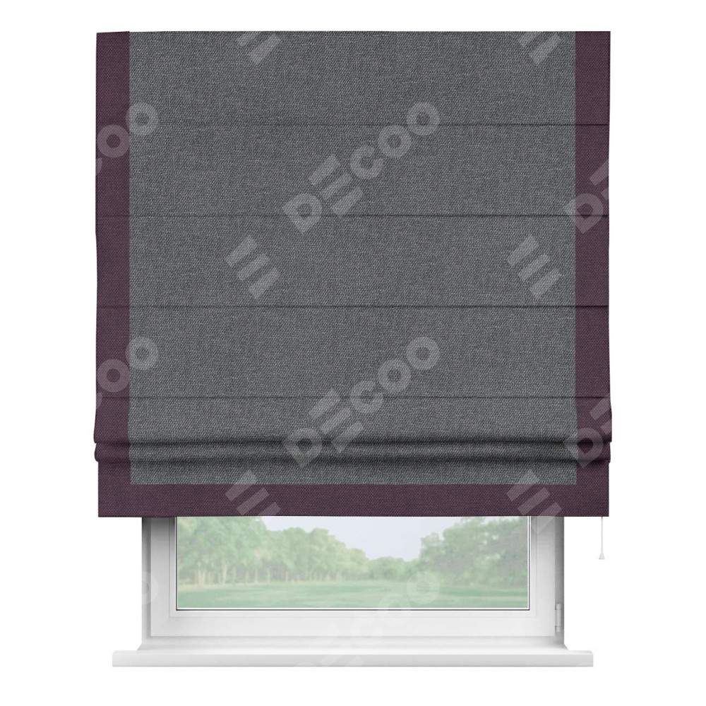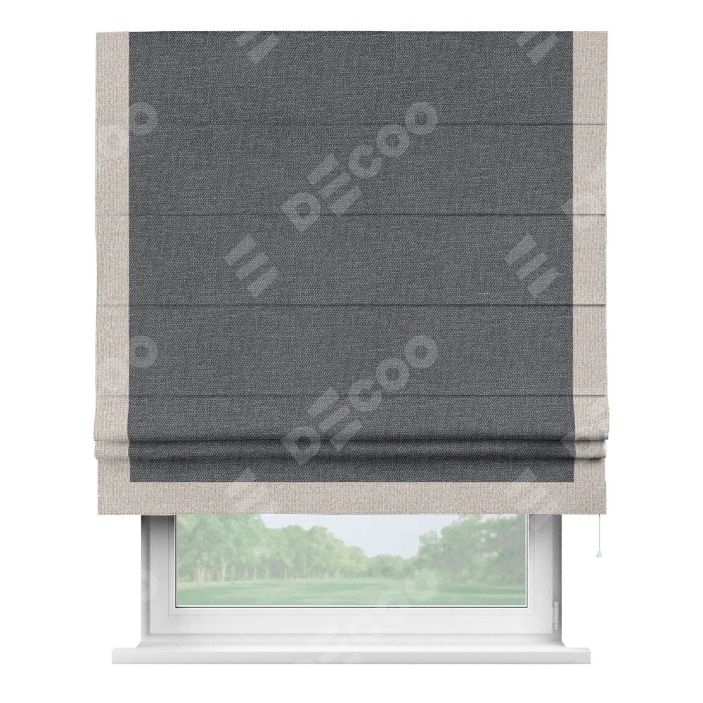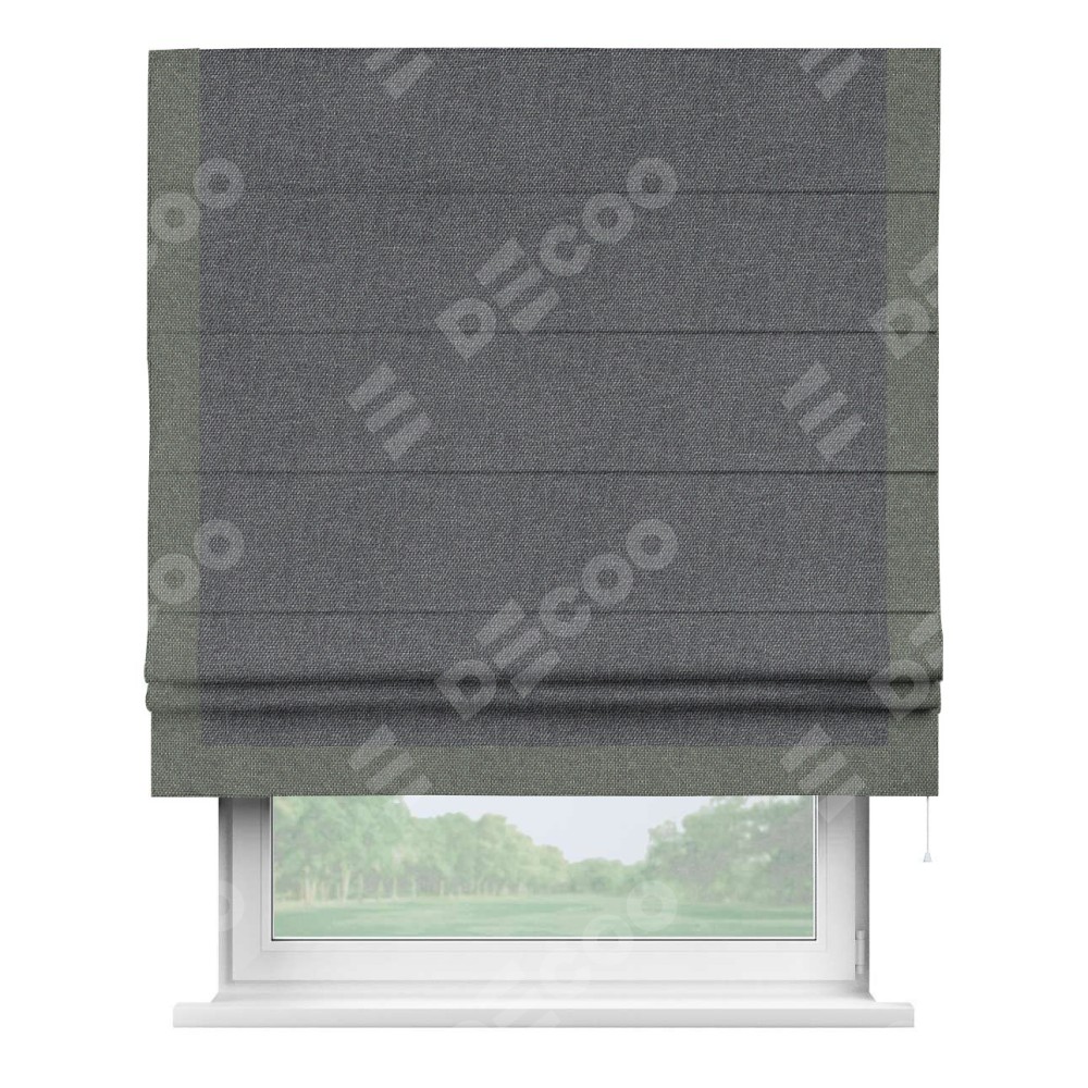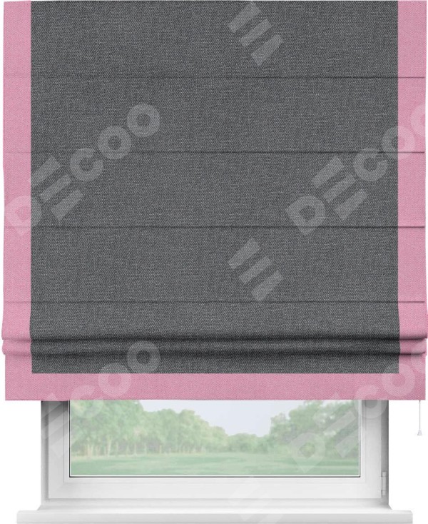 Римская штора «Кортин» для проёма, лён димаут графит с кантом Виктория