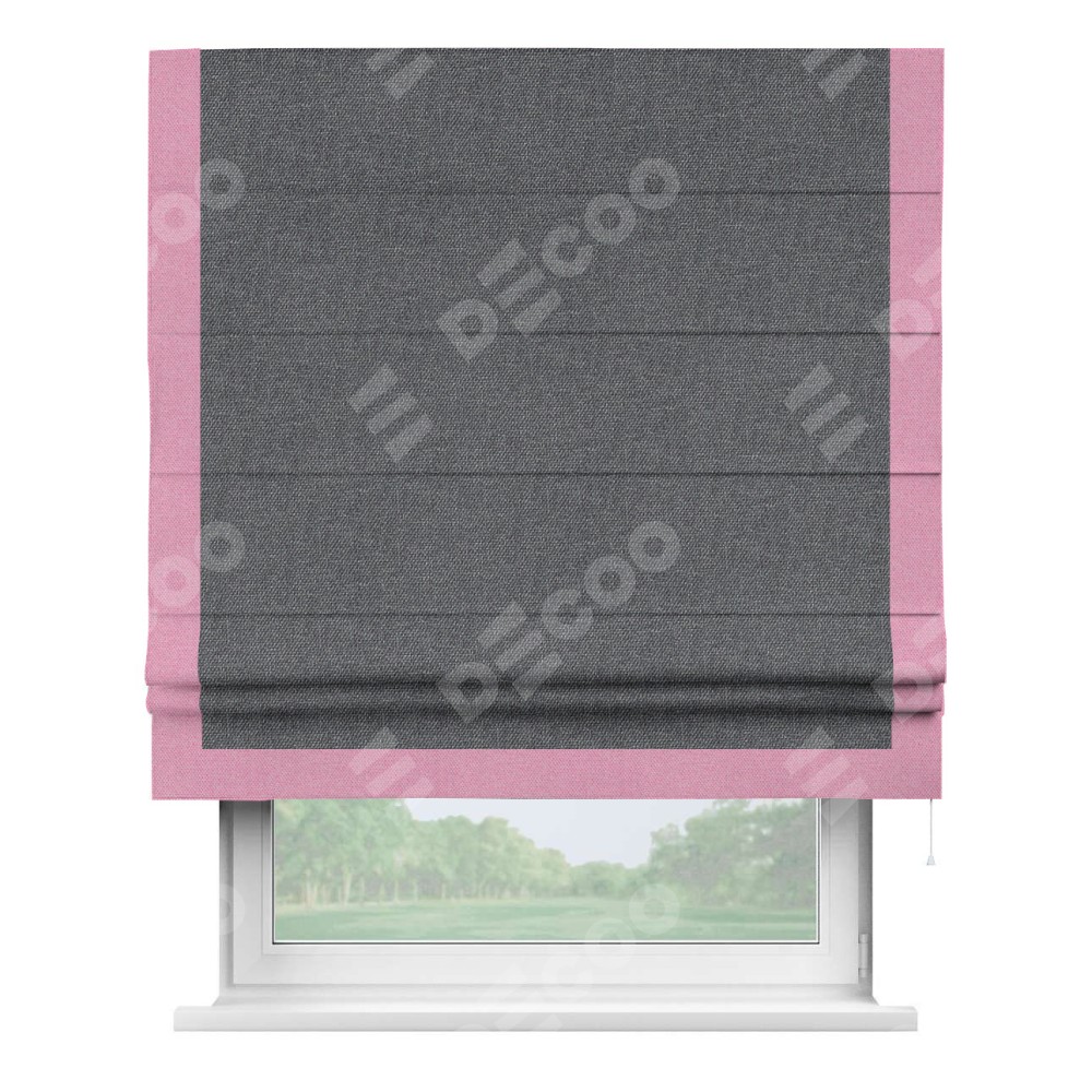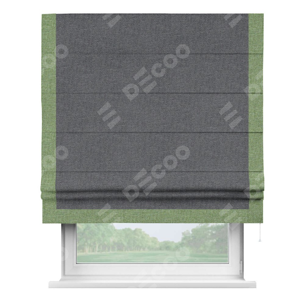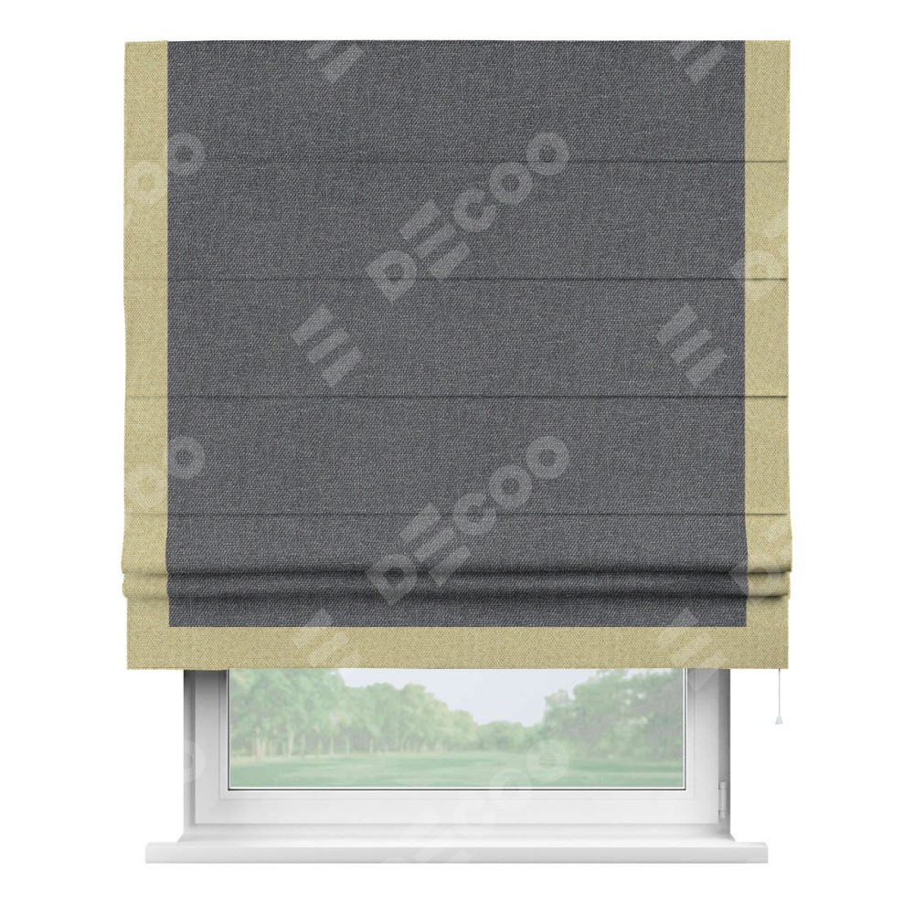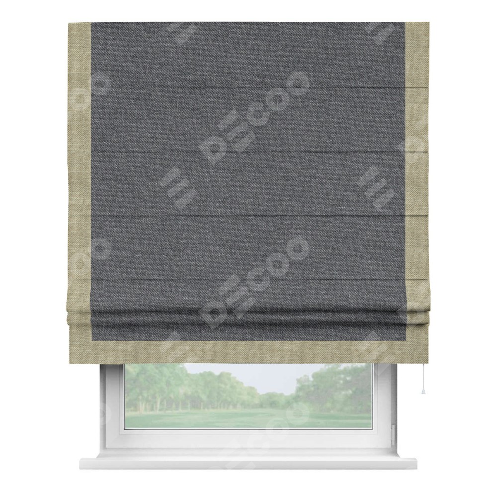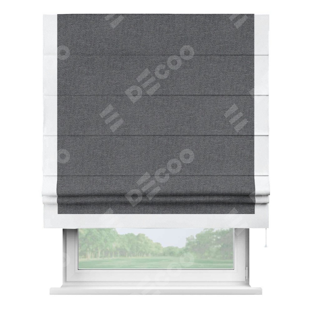 Римская штора «Кортин» для проёма, лён димаут графит с кантом Виктория