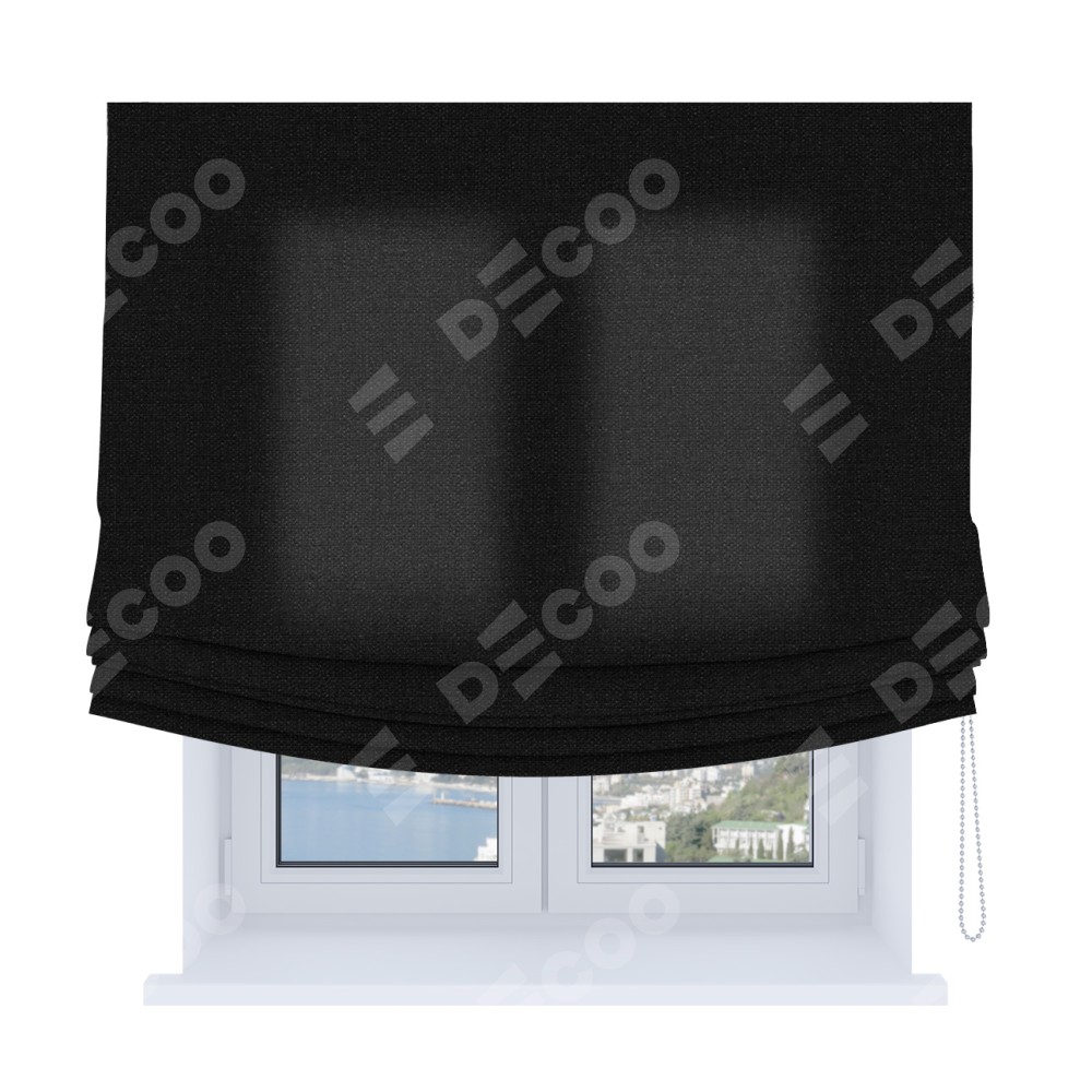 Римская штора «Кортин», лён черный, Soft с мягкими складками