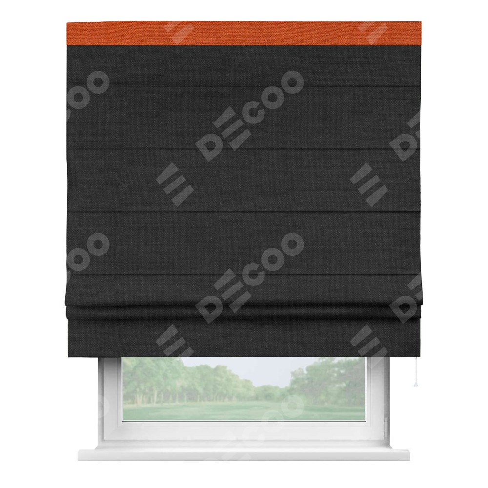 Римская штора «Кортин» для проёма, лён чёрный, с кантом Кинг