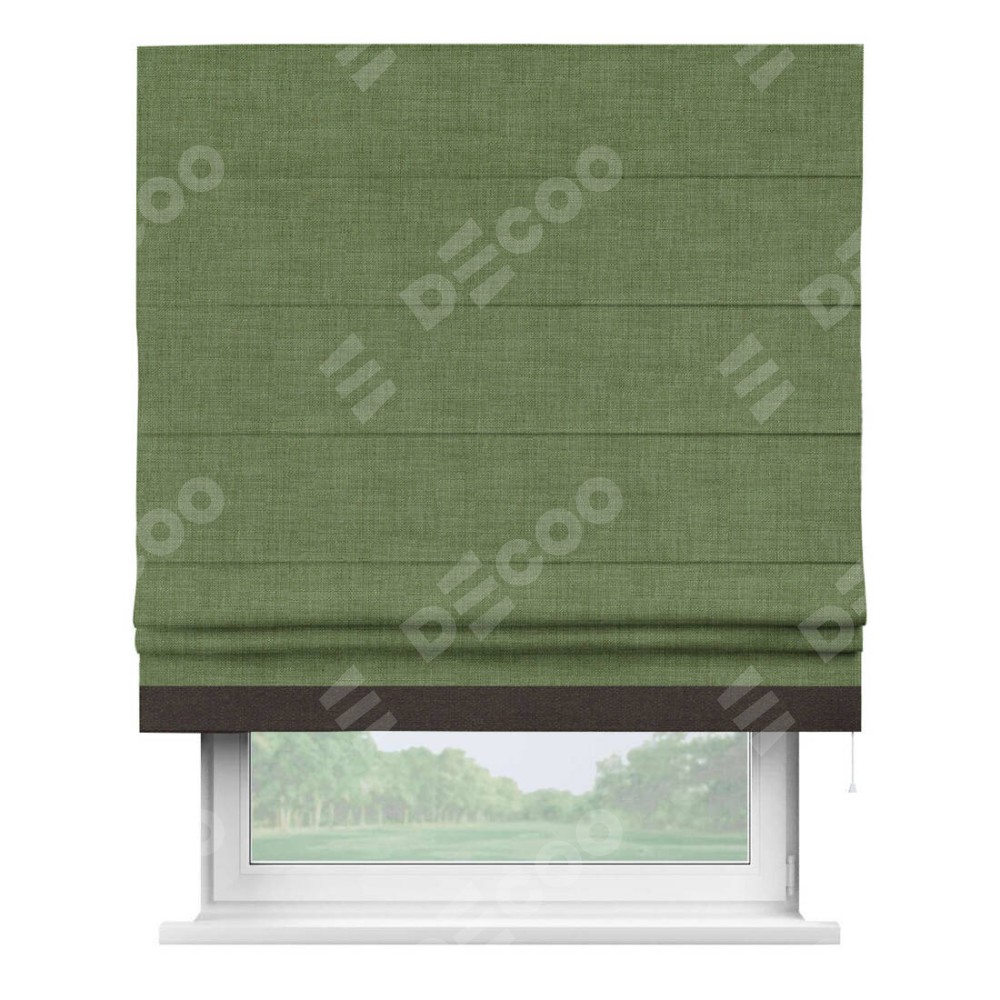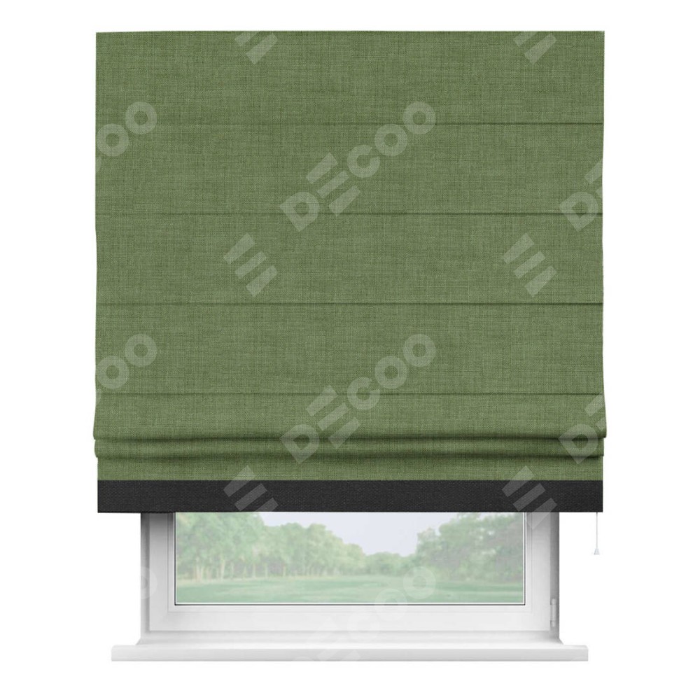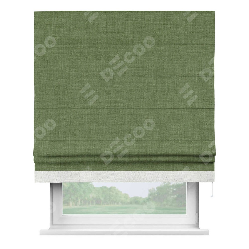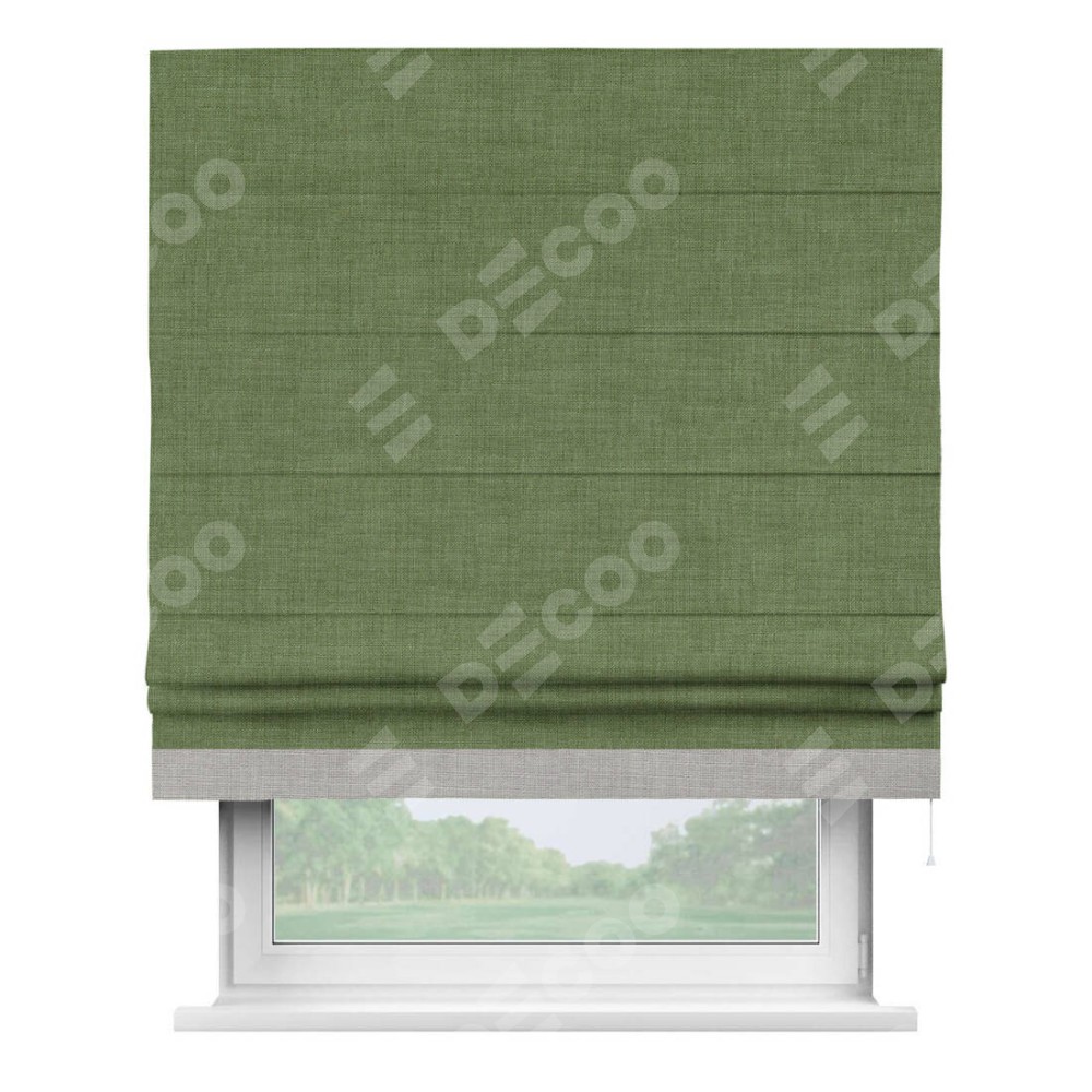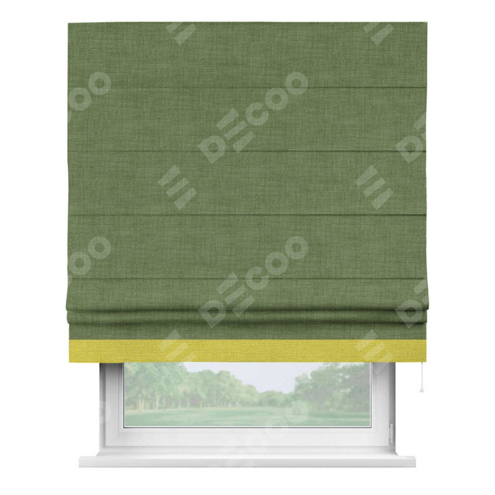 Римская штора «Кортин» для проёма, лён зелёный, с кантом Джестер