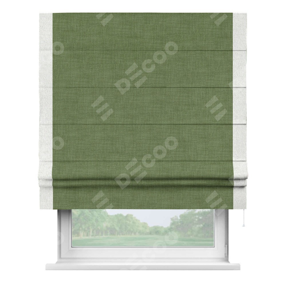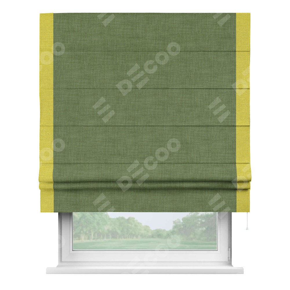 Римская штора «Кортин» для проёма, лён зелёный, с кантом Стрим Дуо