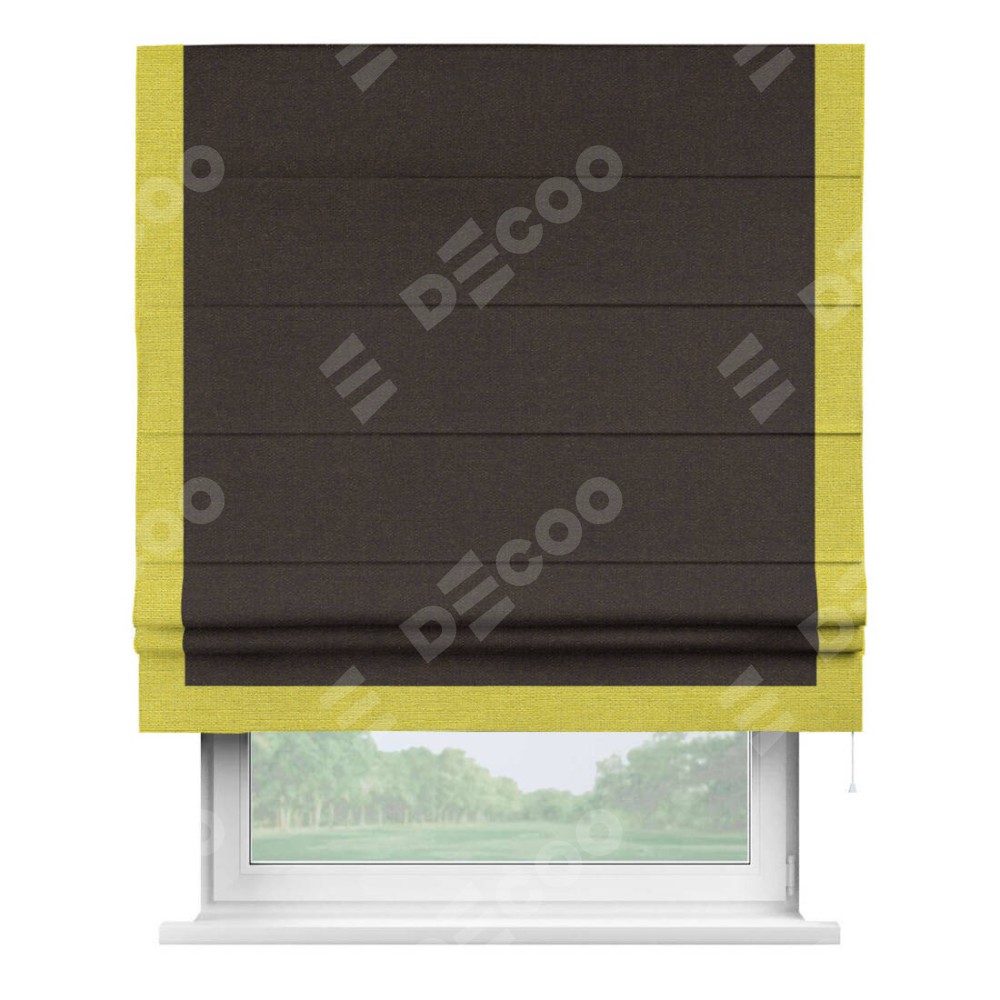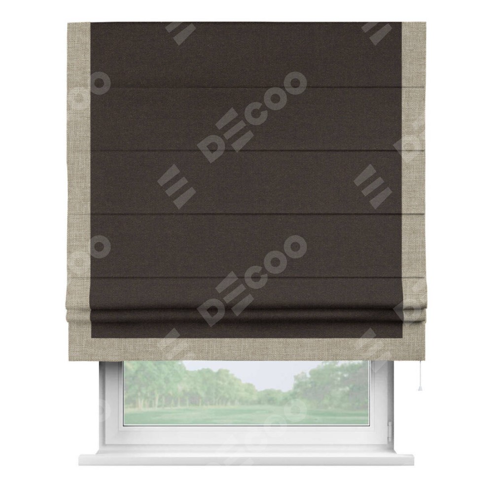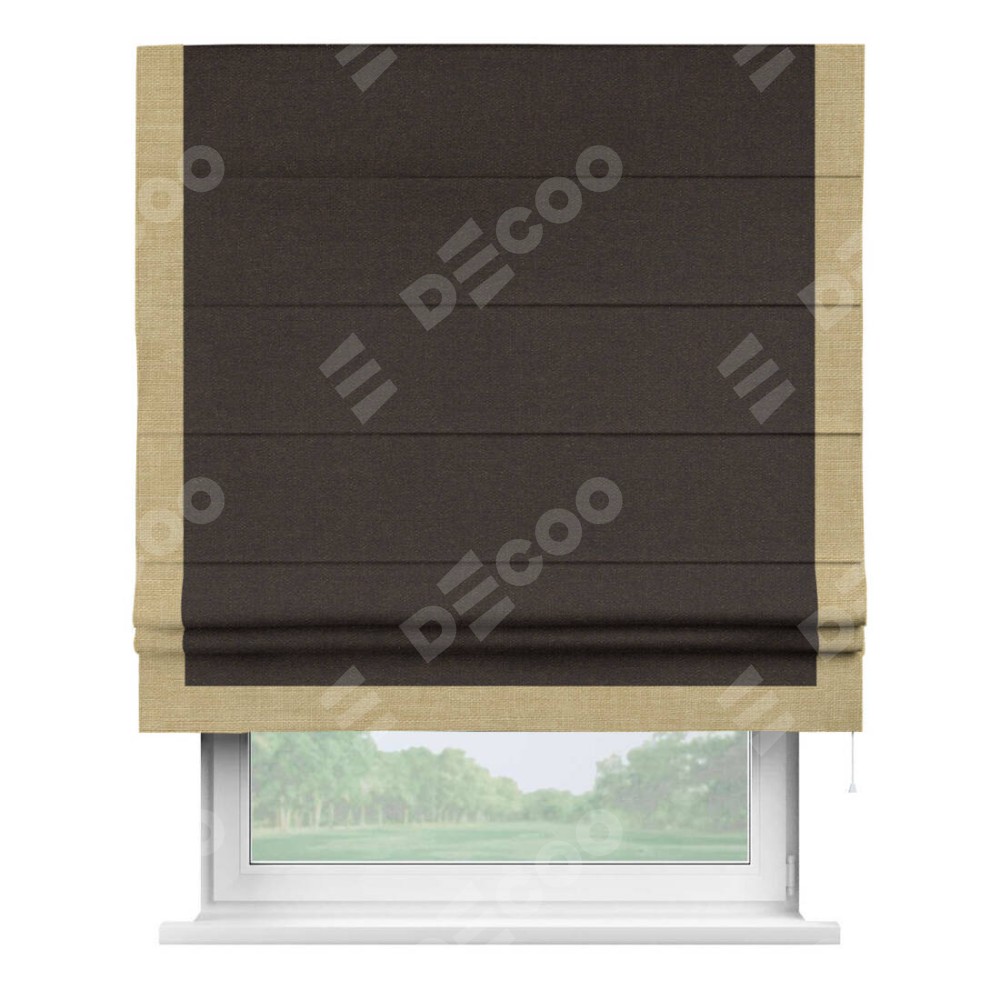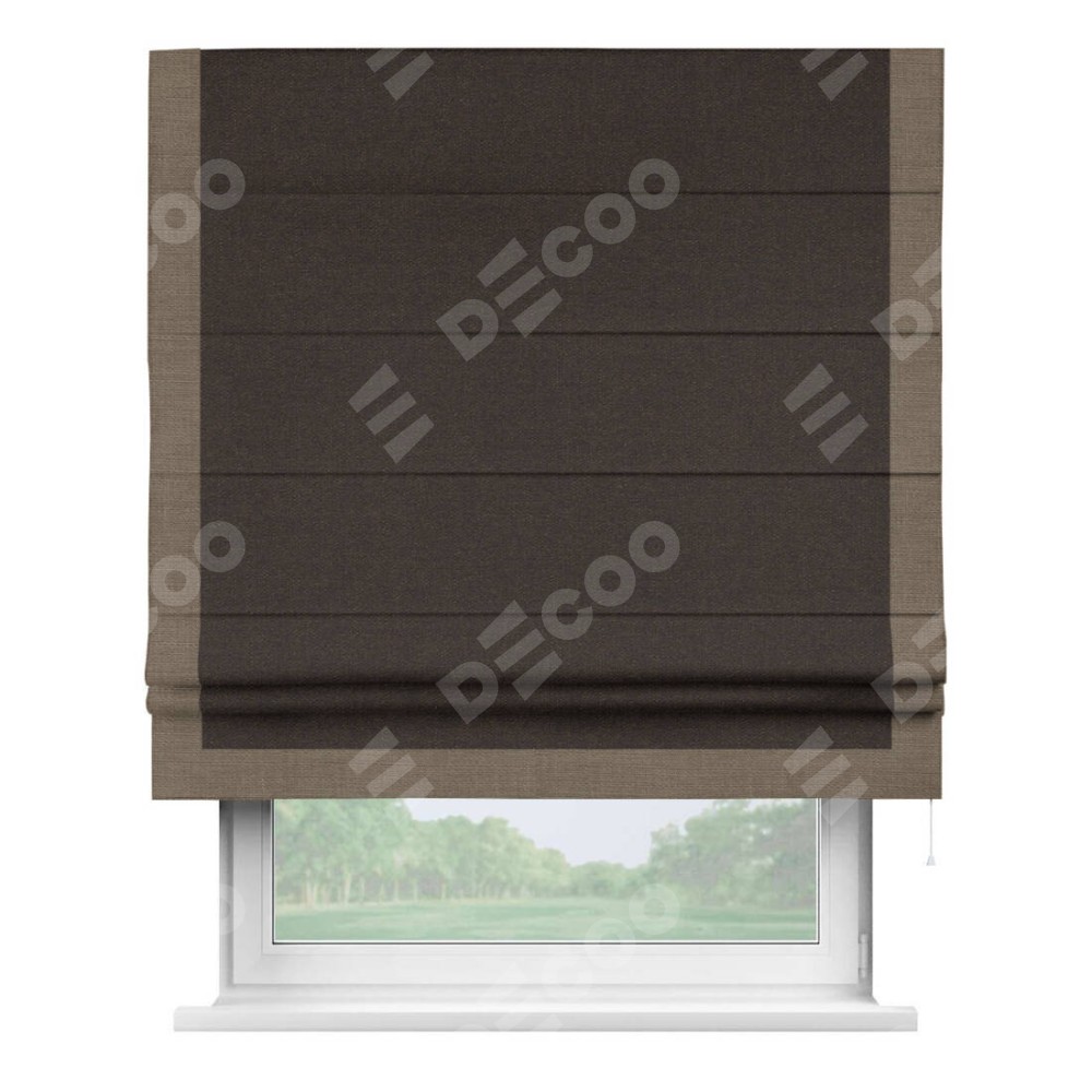 Римская штора «Кортин» для проёма, лён тёмно-коричневый, с кантом Виктория