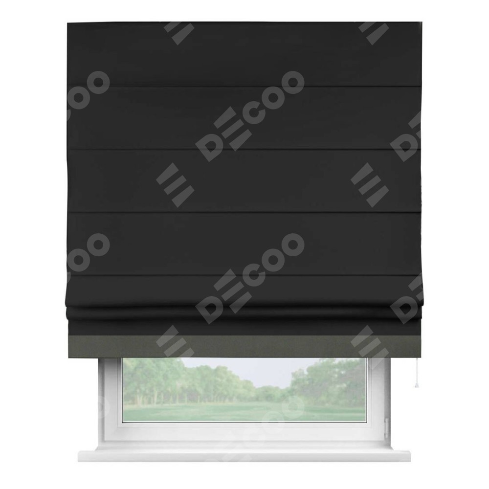 Классическая римская штора производителя «Cortin», пошита из ткани однотонный блэкаут черный, артикул: 37. Имеет универсальный механизм и подходит для монтажа: на потолок, на стену и в нишу.