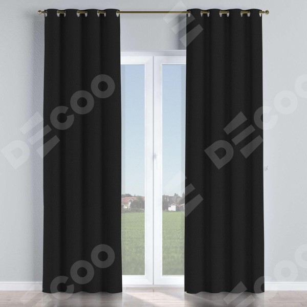 Комплект прямых штор, от производителя «Cortin», пошиты из ткани лён рустик черный, артикул ткани 145313. Данная модель пошита на люверсах, комплектуется на выбор круглым карнизом и подходит для монтажа на стену или потолок. Для создания элегантных складок рекомендуемый коэффициент 1:2 (на 100 см. ширины проёма 200 см. ширины ткани). Важно! Ширина штор указана без учёта коэффициента сборки!