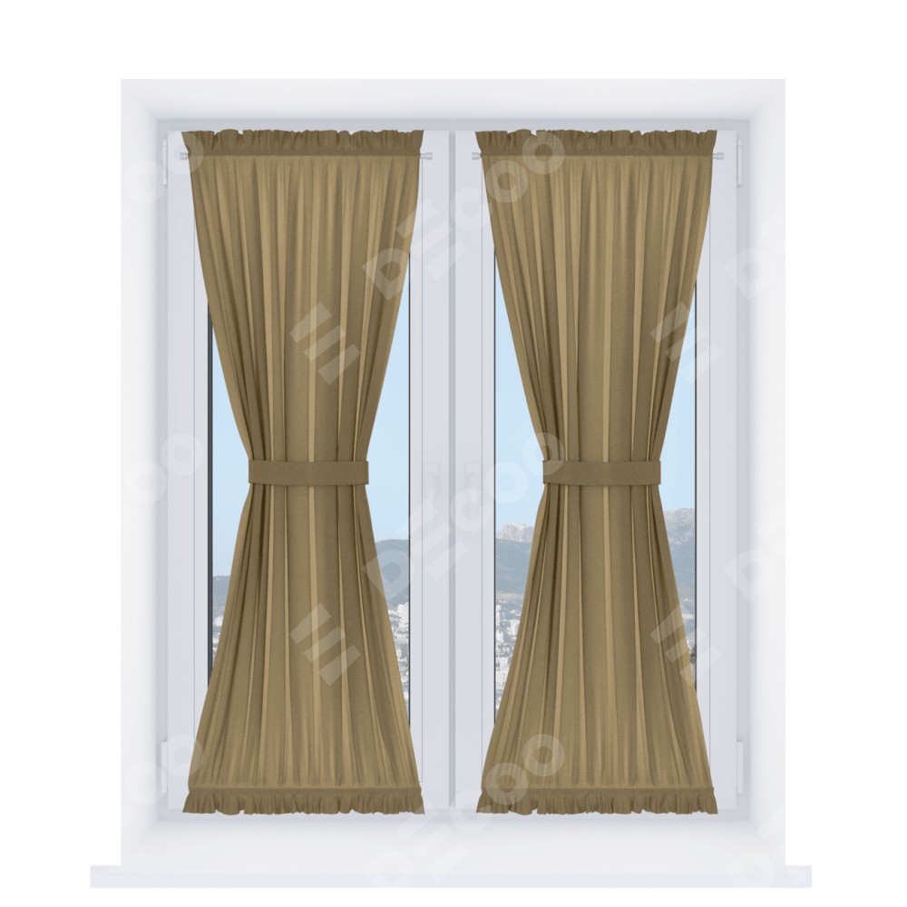 Штора «Песочные часы» производителя «Cortin», используется для створок окон и дверей, пошита из ткани лён димаут оливковый, артикул ткани 16243.