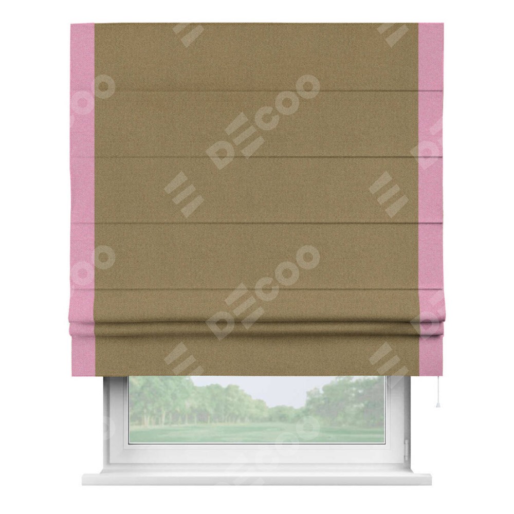 Римская штора «Кортин» с кантом Стрим Дуо, для проема, ткань лён димаут, оливковый