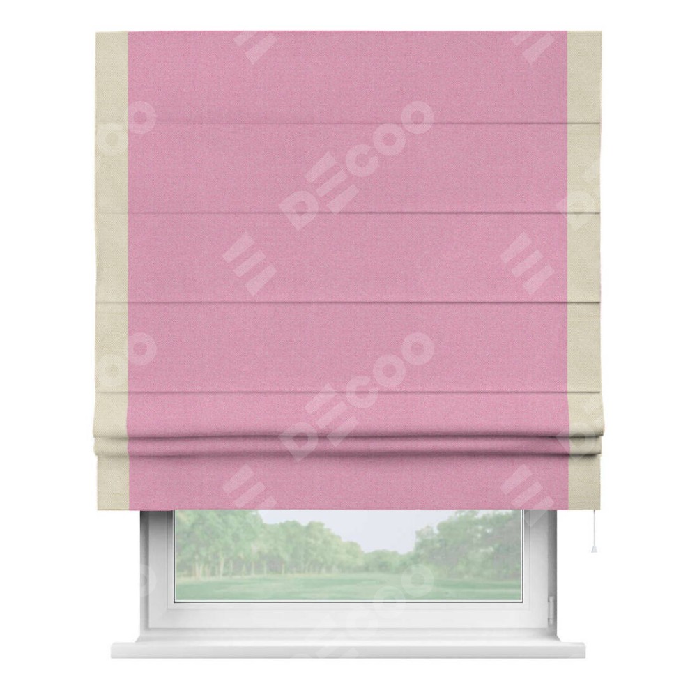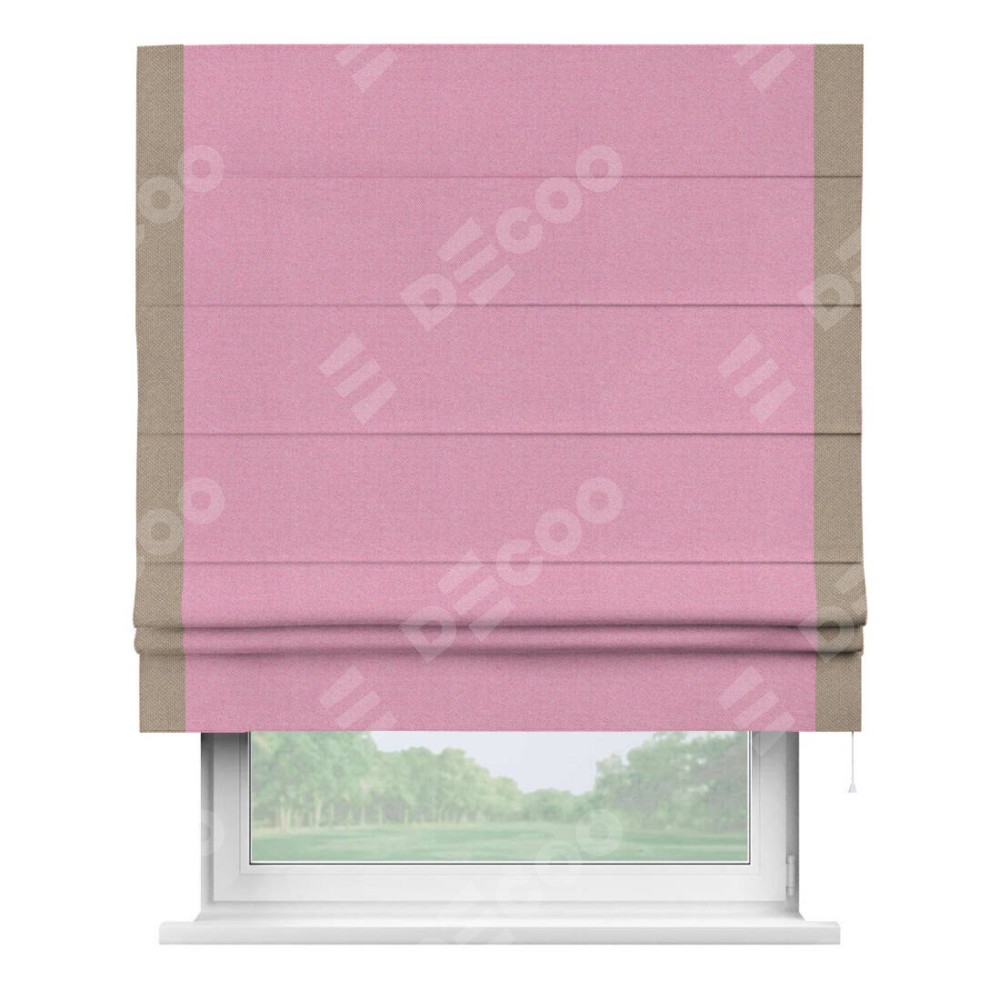 Римская штора «Кортин» с кантом Стрим Дуо, для проема, ткань лён димаут, розовый