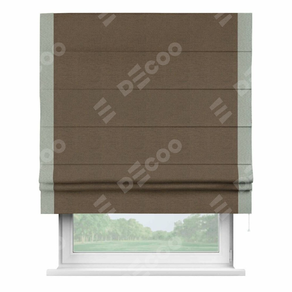 Римская штора «Кортин» с кантом Стрим Дуо, для проема, ткань лён димаут, тёмно-коричневый