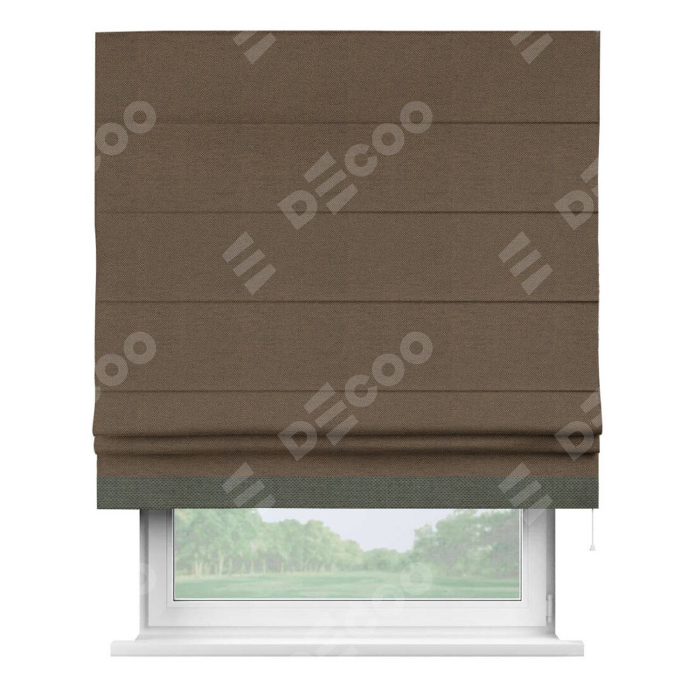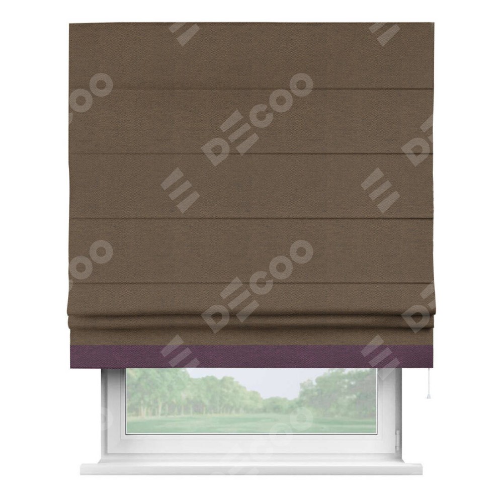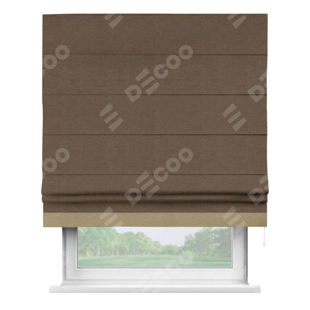 Римская штора «Кортин» с кантом Джестер, для проема, ткань лён димаут, тёмно-коричневый