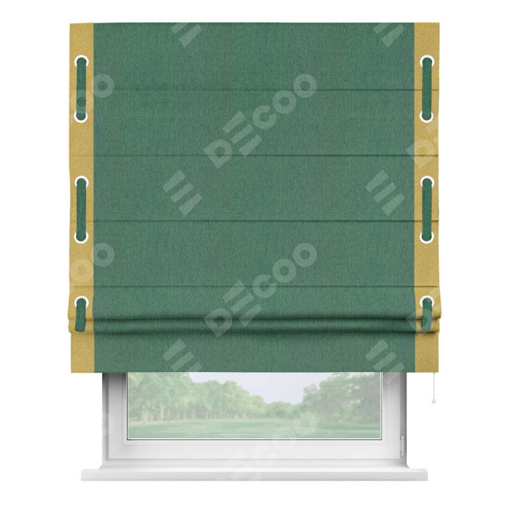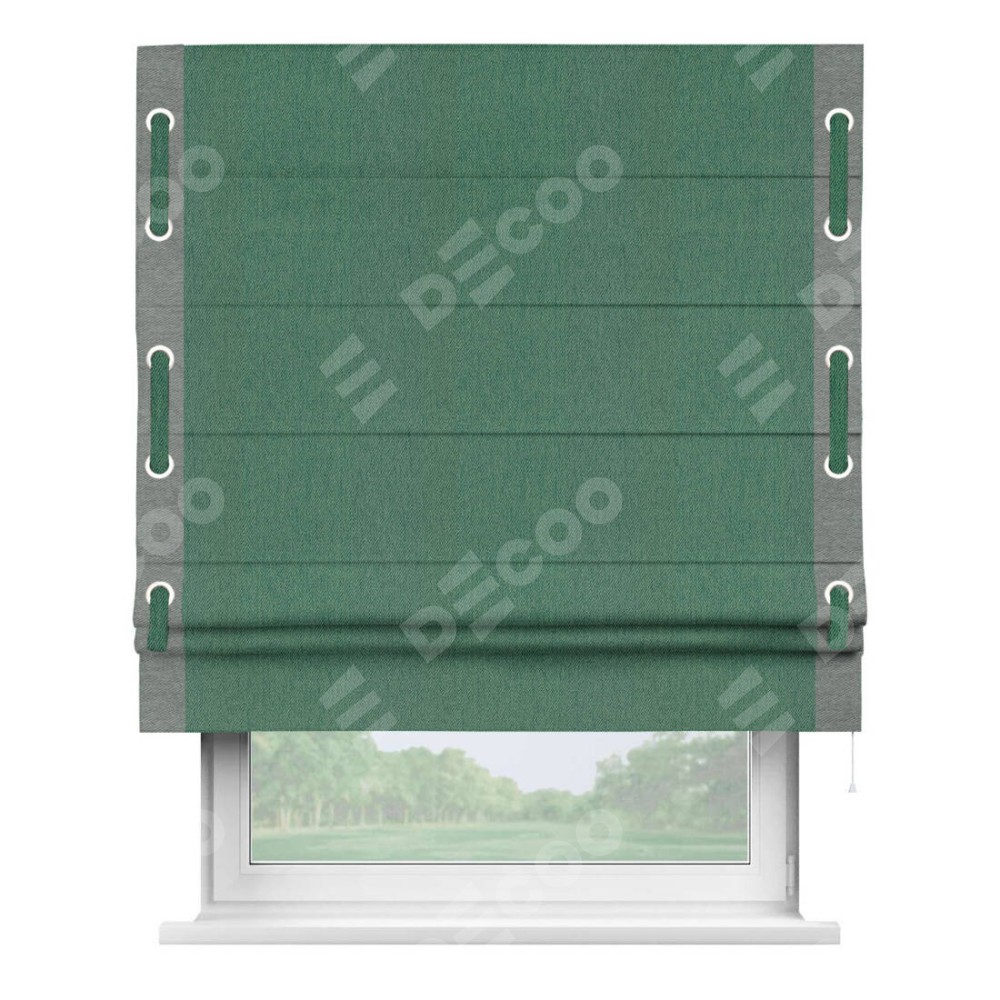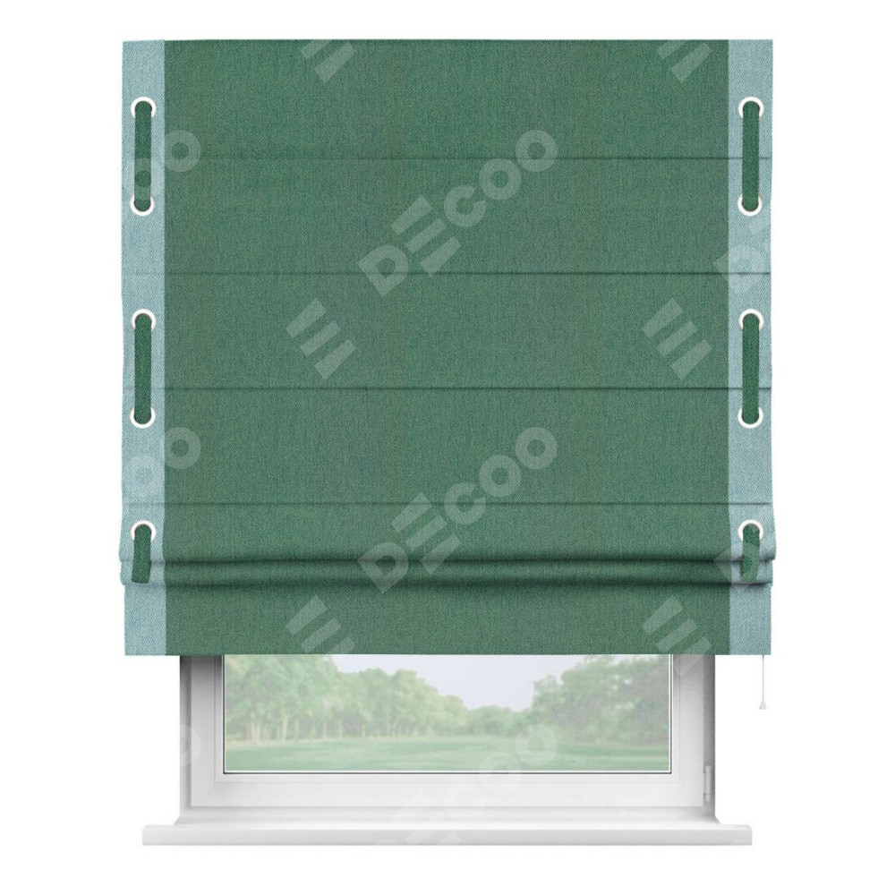 Римская штора «Кортин» с кантом Стрим Дуо (люверсы с пояском), для проема, ткань твид блэкаут, зелёный