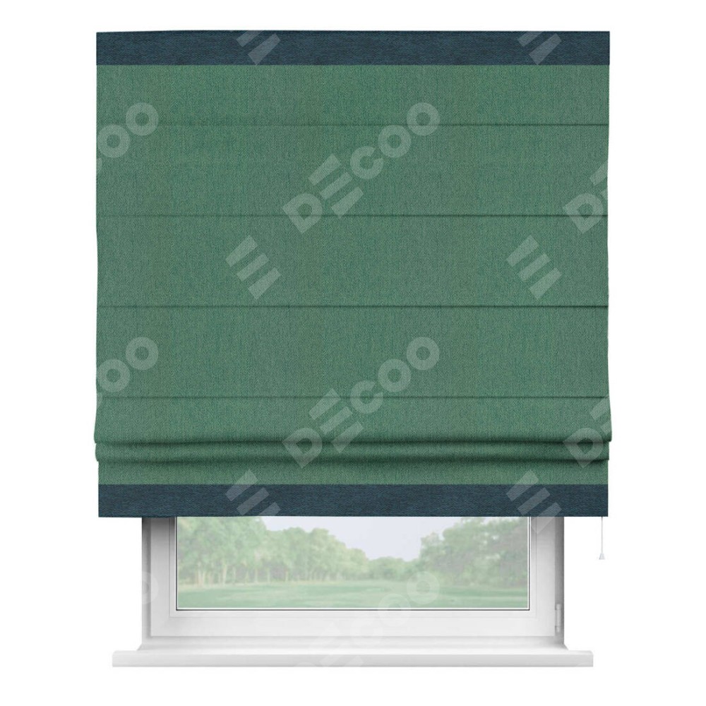 Римская штора «Кортин» с кантом Горизонт, для проема, ткань твид блэкаут, зелёный