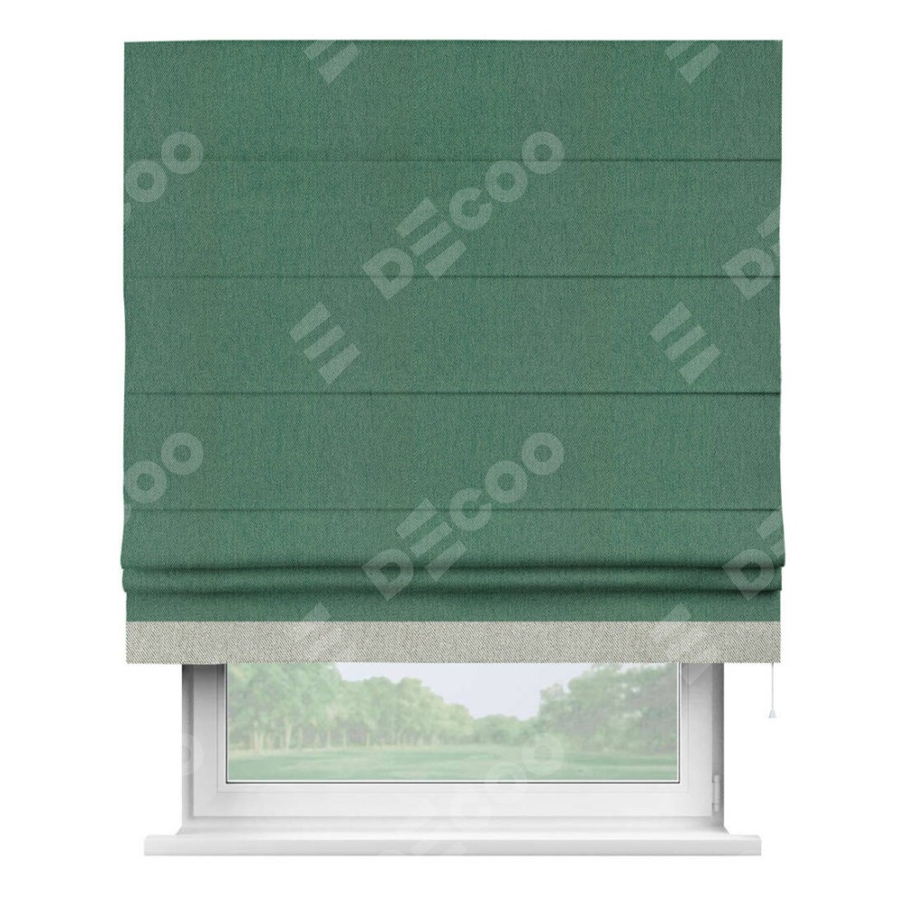 Римская штора «Кортин» с кантом Джестер, для проема, ткань твид блэкаут, зелёный