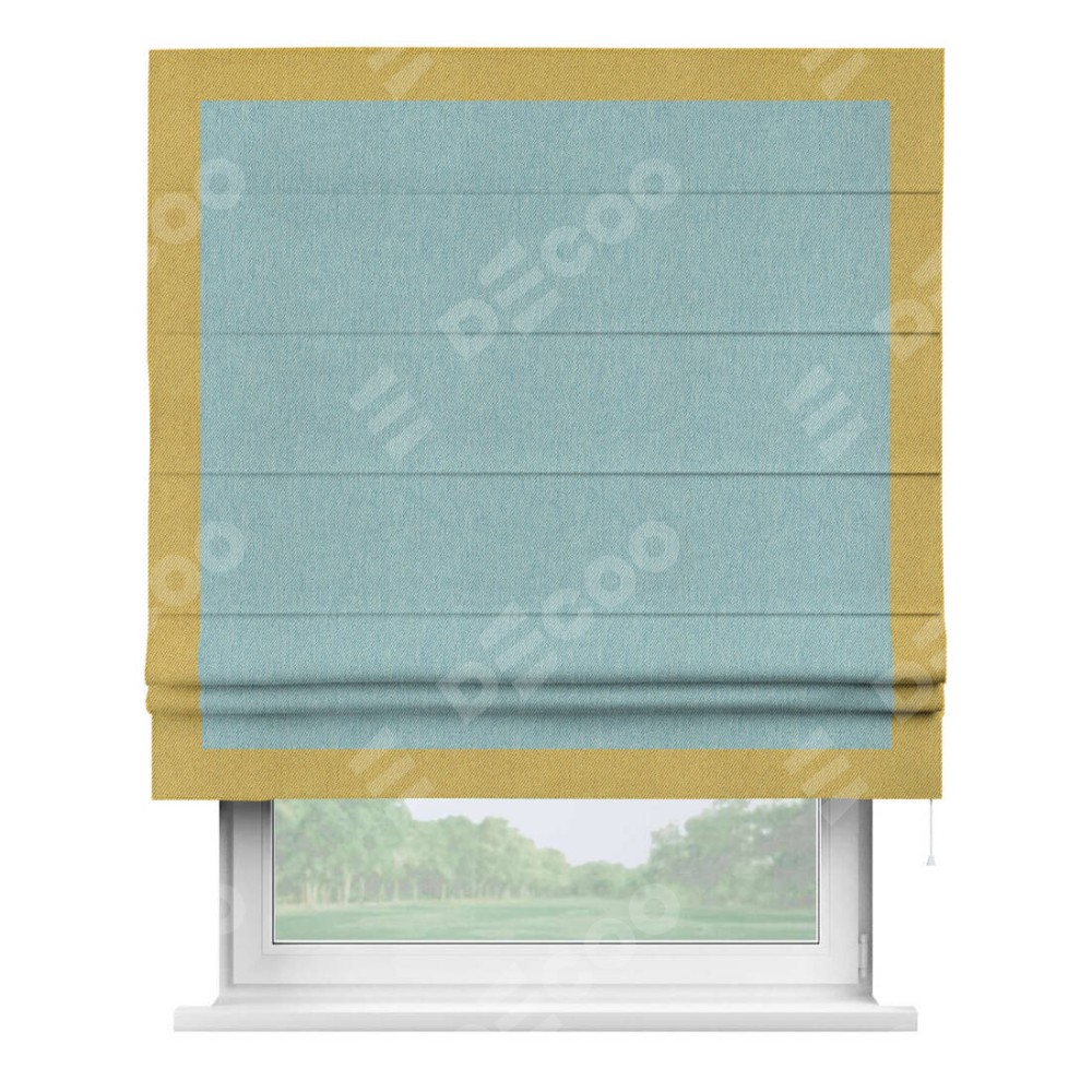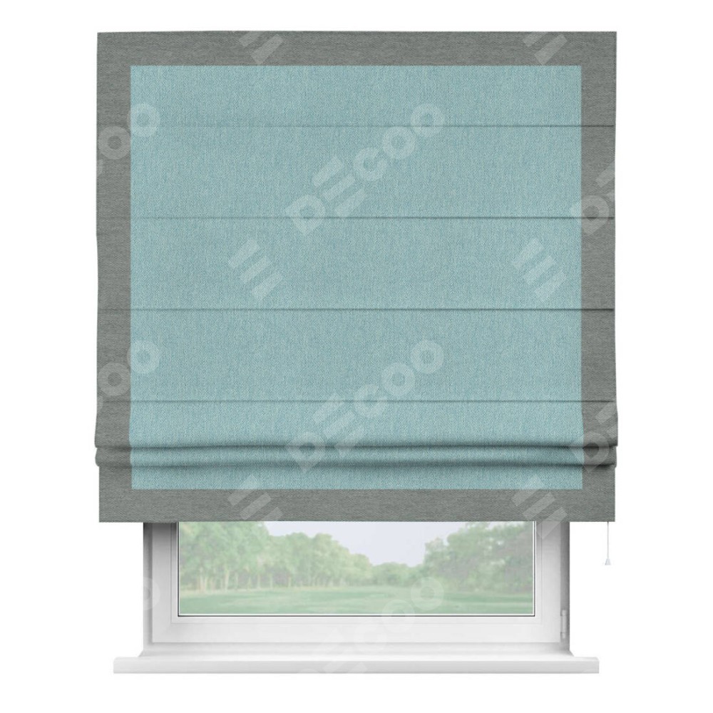 Римская штора «Кортин» с кантом Чесс, для проема, ткань твид блэкаут, небесно-голубой