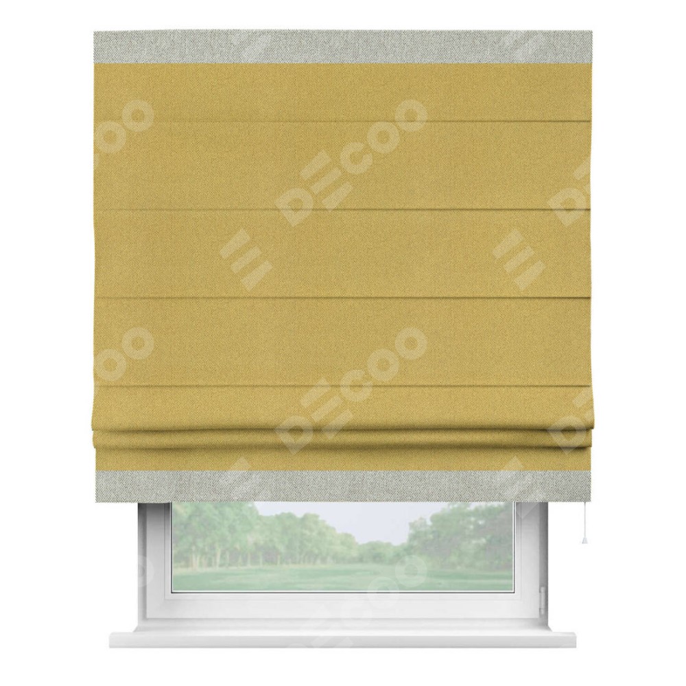 Римская штора «Кортин» с кантом Горизонт, для проема, ткань твид блэкаут, пыльная горчица