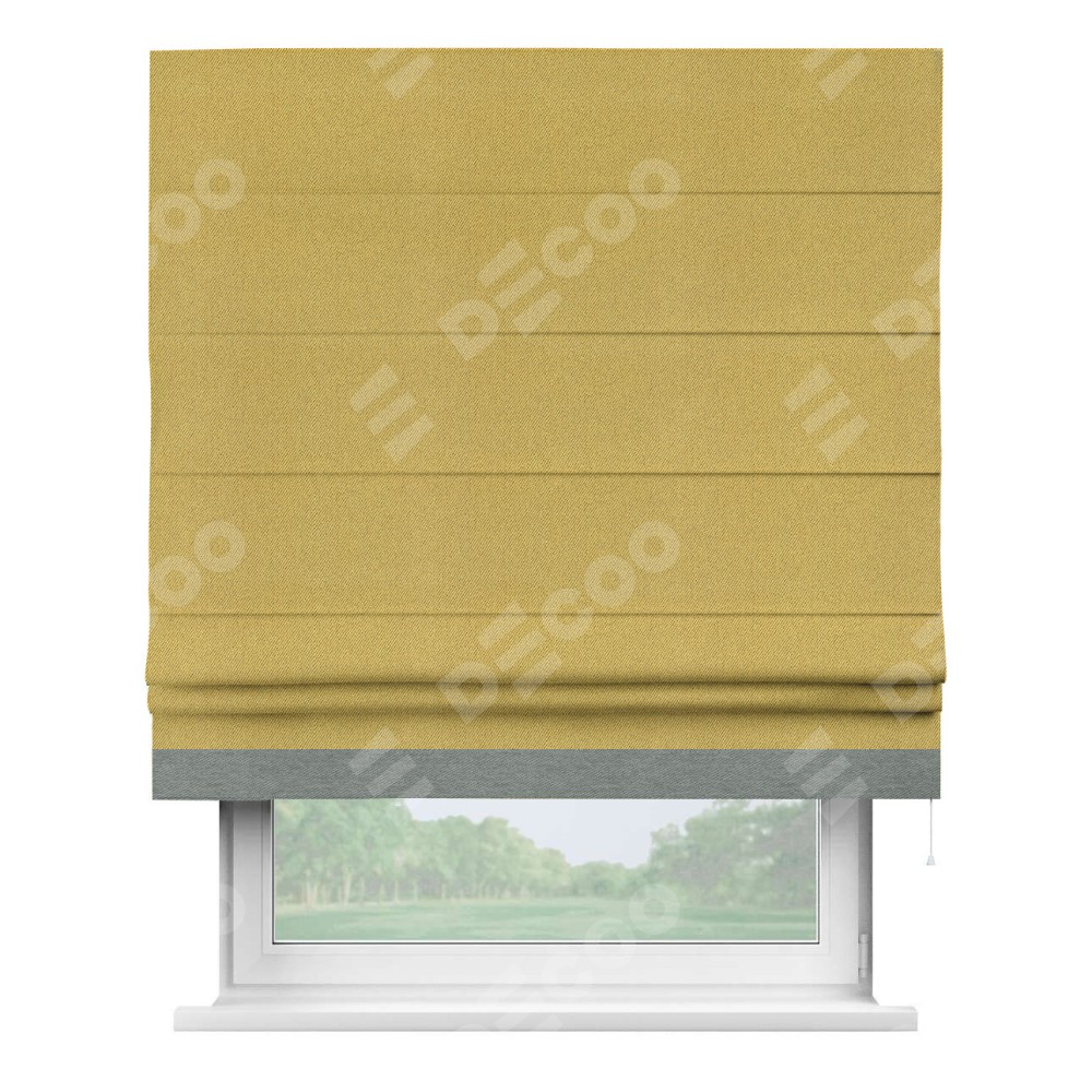 Римская штора производителя «Cortin», используется для проёма, пошита из ткани твид блэкаут пыльная горчица, артикул 21588. Отделка шторы кантом «Джестер», ткань для канта используется из твида разной расцветки на выбор. Имеет универсальный механизм и подходит для монтажа: на потолок, на стену и в нишу.
