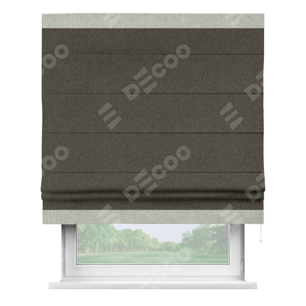Римская штора «Кортин» с кантом Горизонт, для проема, ткань твид блэкаут, тёмно-коричневый