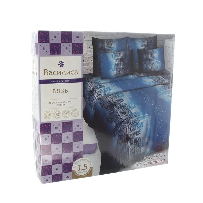 Постельное бельё 1,5 сп. «Василиса» Сан-Франциско, 145×215 см, 150×214 см, 70×70 см — 2 шт.