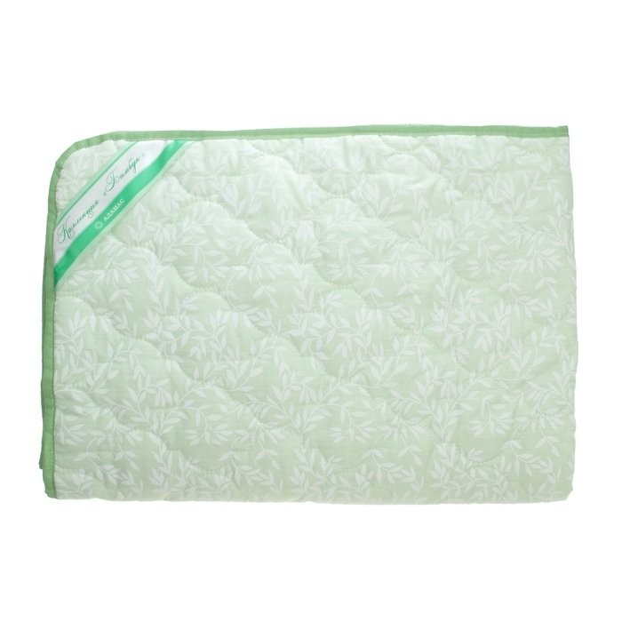 Наматрасник закрепляется резинками по углам. Это позволяет ему оставаться на месте на протяжении всей ночи. Чехол наматрасника выполнен в светло-зелёных тонах из смеси хлопка и полиэстера.