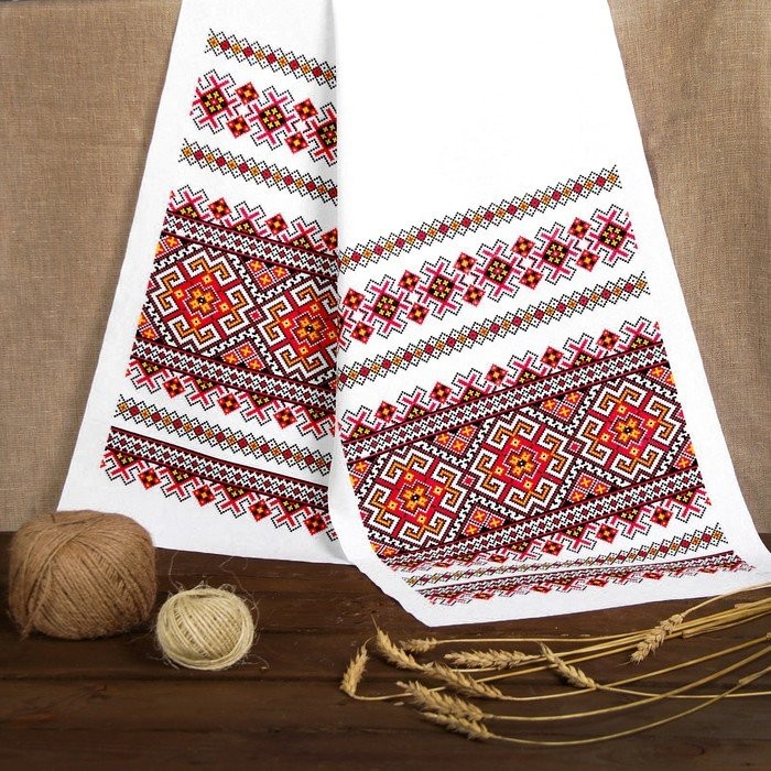 Рушник под ноги. Кто первым из молодых на него встанет — тому и быть хозяином в доме. Лучше отказаться от вариантов, на которых изображена пара голубей или лебедей, а также кольца. Считается, что супруги могут затоптать своё счастье. Лучше отдать предпочтение геометрическим или растительным узорам.