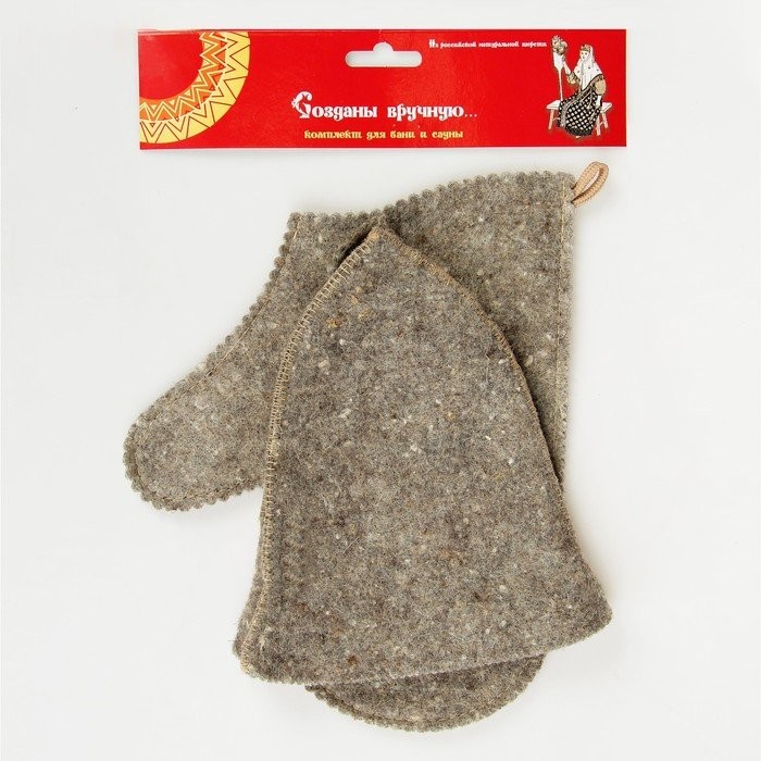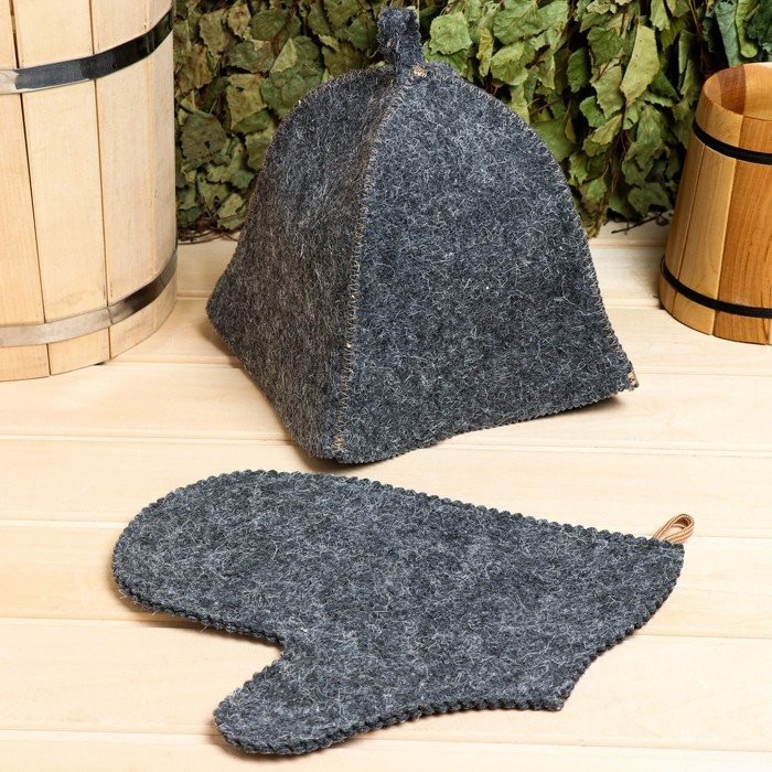 Для комфортного отдыха в парной возьмите с собой набор банных принадлежностей. Предметы из этого комплекта предохраняют тело от перегрева и являются средствами индивидуального пользования. Влажные изделия рекомендуется сушить в расправленном виде на горизонтальной поверхности. Принадлежности из войлока и фетра стирайте вручную при температуре воды 30 °C.