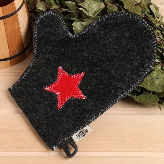 Набор для бани «Буденовец» серый: шапка, коврик, рукавица