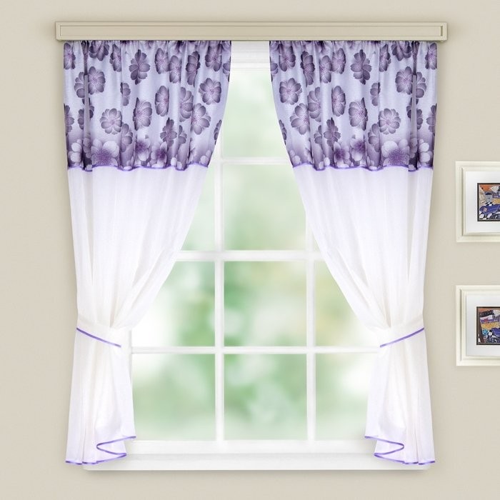 Комплект штор для кухни Кристалл 280*160 см, сирень органза, принт МИКС, вуаль однотон., п/э