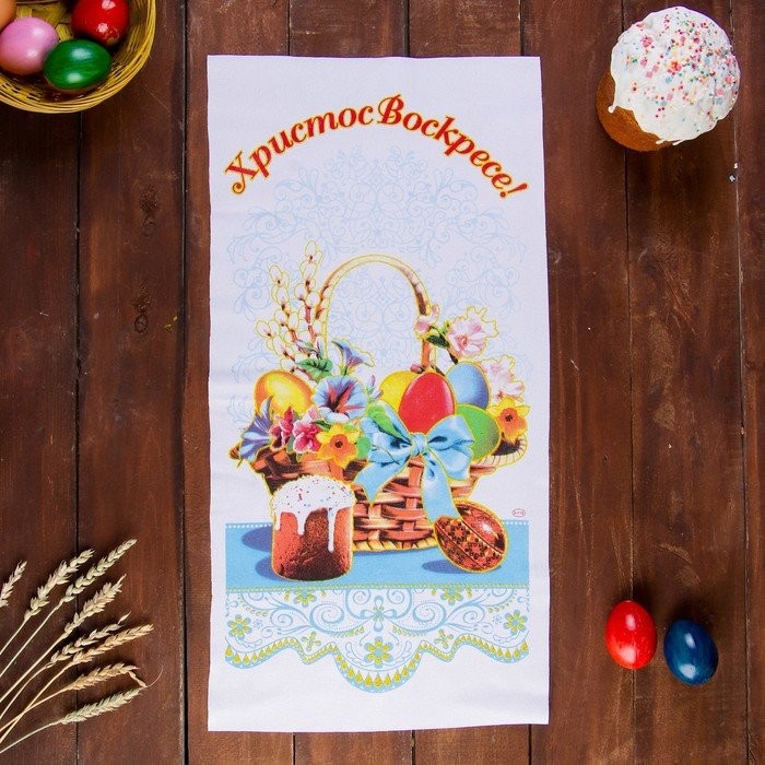 Рушник — один из самых древних и символичных предметов, дошедших до наших дней и не потерявших своего назначения. Пасхальный рушник (или салфетка) появился с принятием христианства на Руси. На нём изображены красивые православные храмы, религиозная символика и надписи «Христос Воскрес».