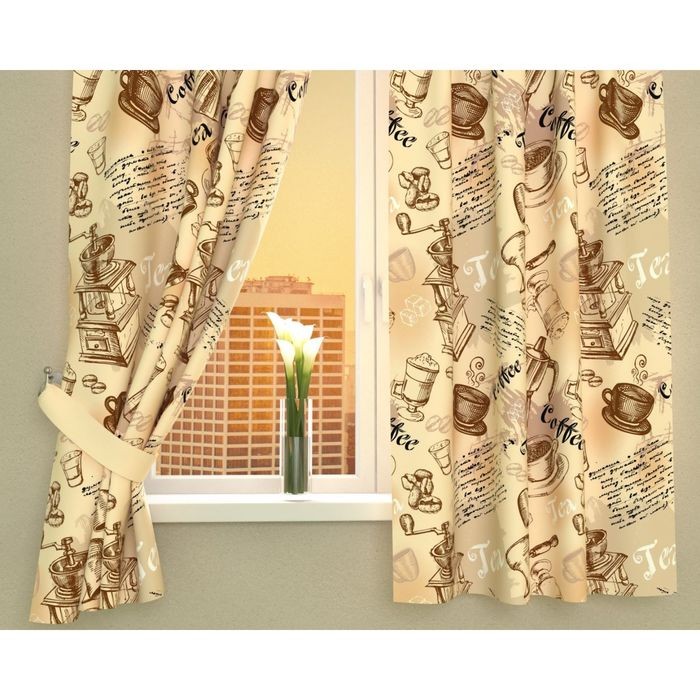 Фотошторы кухонные «Кофейный набор», размер 145×160 см — 2 шт., габардин