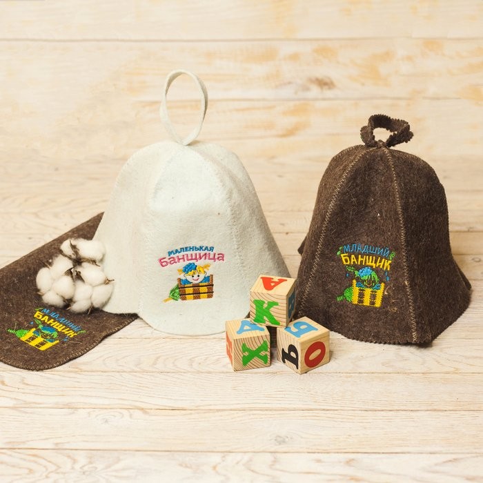Здорово, что ваш малыш любит баню! Процедуры в парилке очень полезны для здоровья. Аксессуары сделают эти процедуры безопасными и очень увлекательными. Крохе точно понравится роль юного банщика. А приятный на ощупь войлок защитит карапуза от теплового удара и ожогов: дело в том, что этот материал практически не нагревается при высоких температурах.