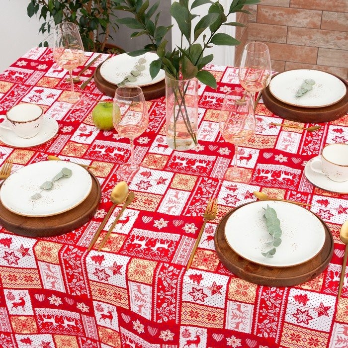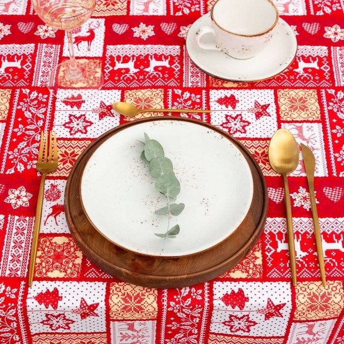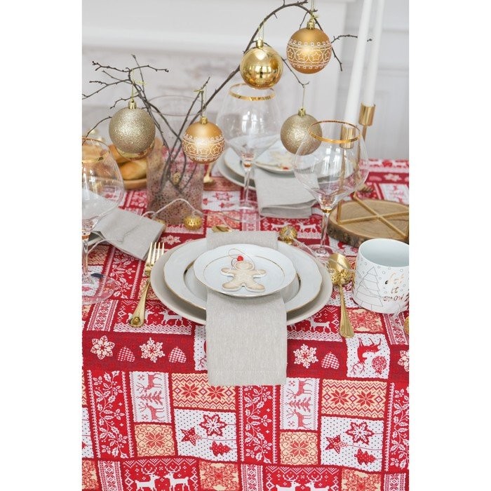 Скатерть «Доляна» Скандинавский рисунок 220*144 см, 100% хлопок, рогожка, 164 г/м2