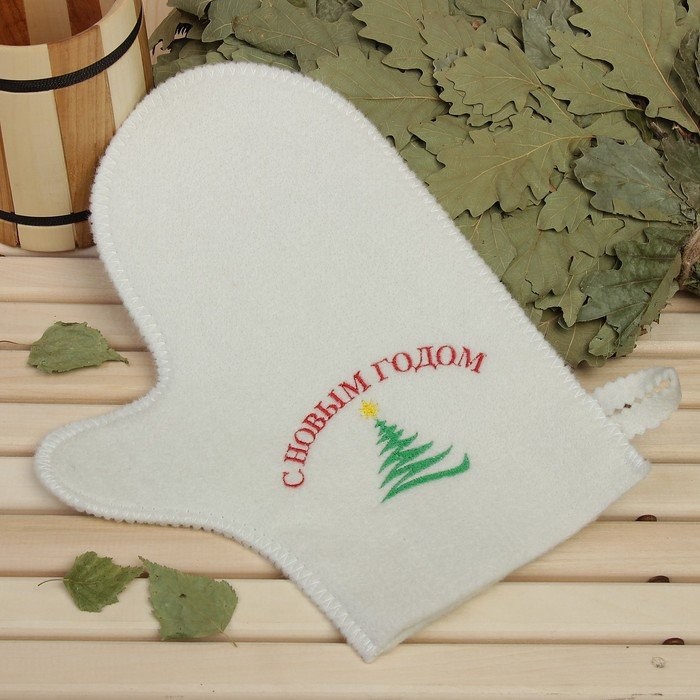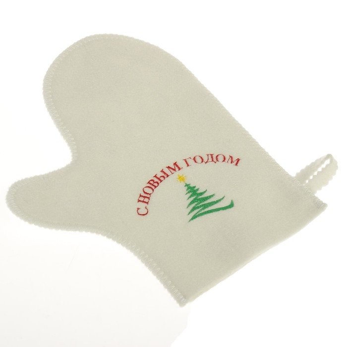 Рукавица для бани с вышивкой «С новым годом» Ёлка, первый сорт
