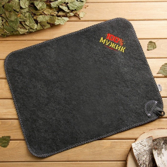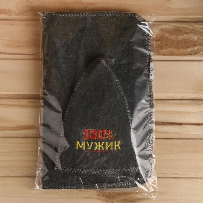 Набор для бани «100% мужику! Для 100% бани» вышивка шапка, коврик и рукавица
