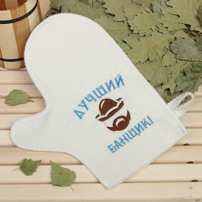 Рукавица для бани с вышивкой «Лучший банщик» первый сорт