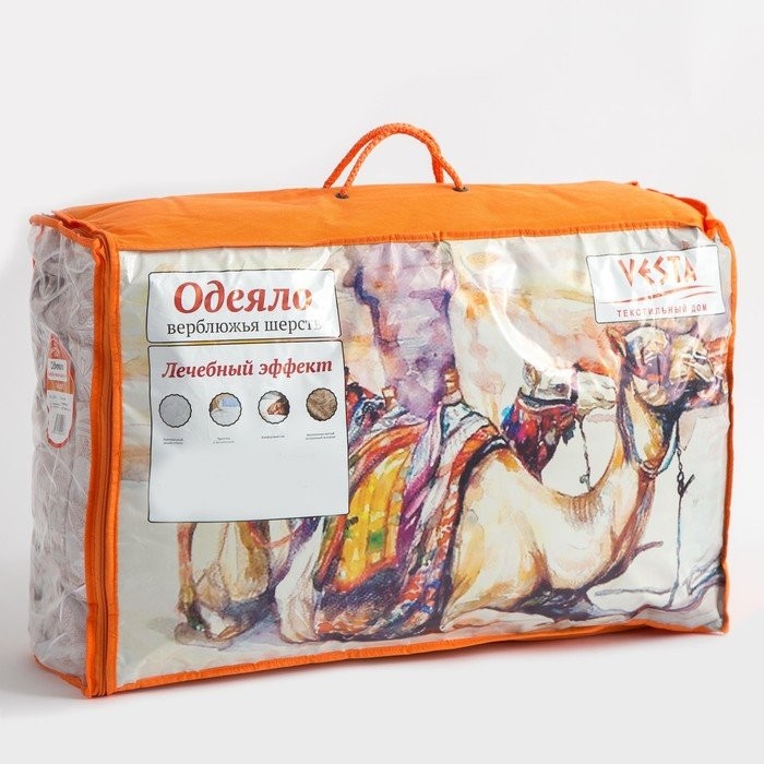 Одеяло зимнее 220×205 см, шерсть верблюда, ткань тик, п/э 100%