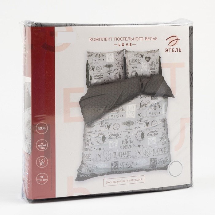 Постельное бельё «Этель» 1.5 сп Love 143*215 см, 150*214 см, 70*70 см -2 шт