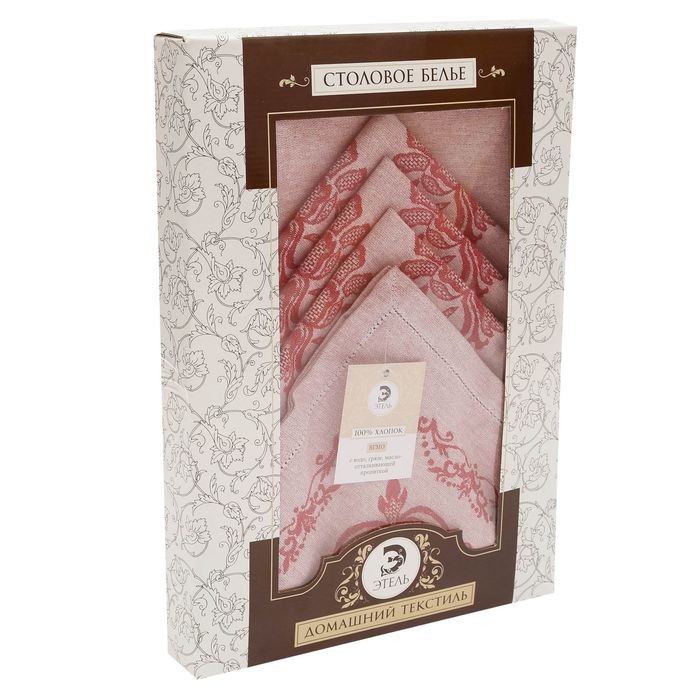Столовый набор «Этель» (скатерть 150×250 см, салфетки 45×45 см — 8 шт.) цвет бордо, хл. с ВМГО