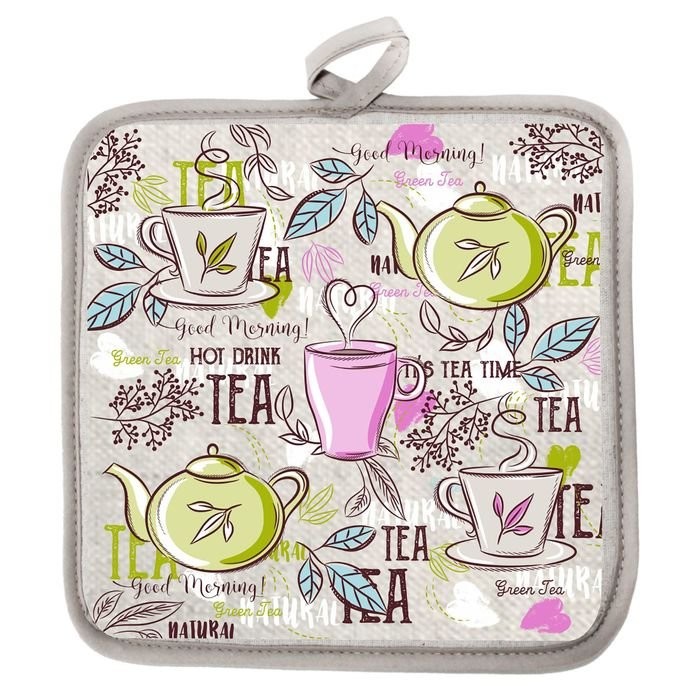 Прихватка Чайное время 18×18 полулён шелкография, 160г/м