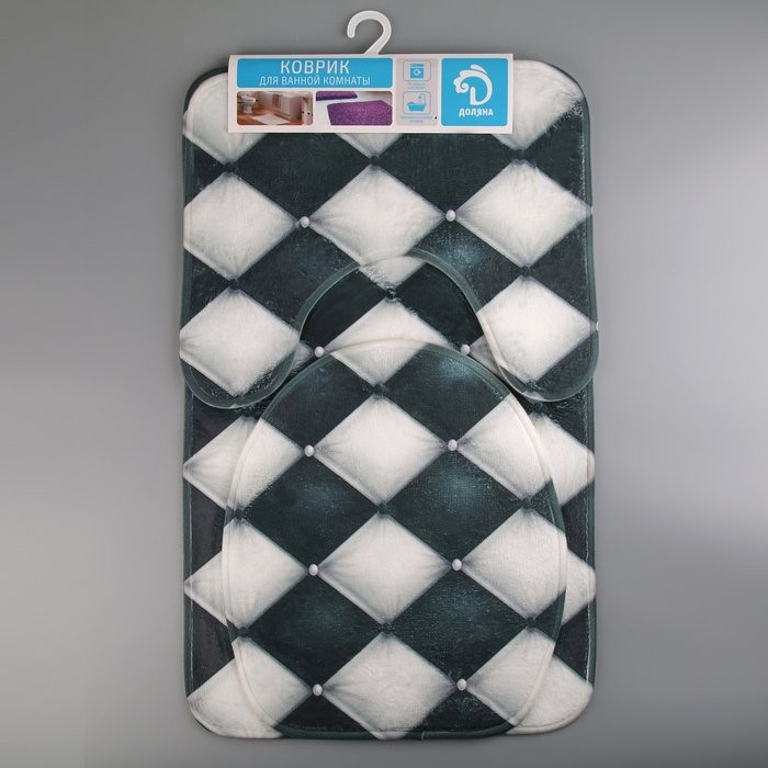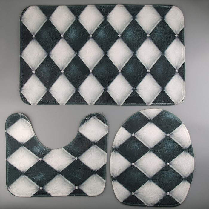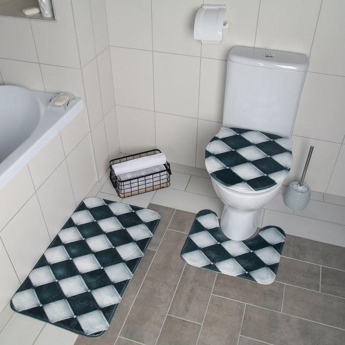 Набор ковриков для ванны и туалета Доляна «Ромбы», 3 шт: 37×45, 37×45, 45×75 см