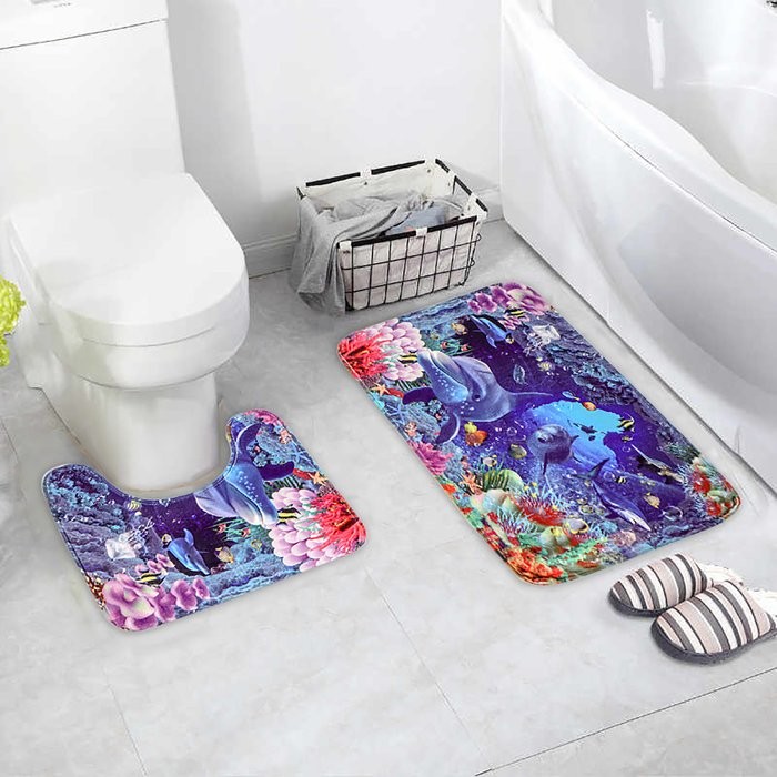 Набор ковриков для ванны и туалета Доляна «Морское дно», 2 шт: 40×45, 45×75 см