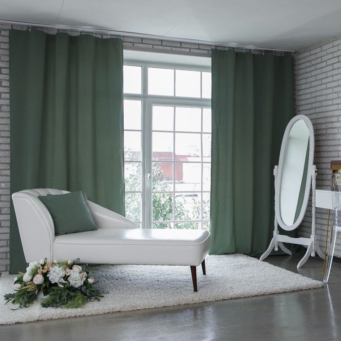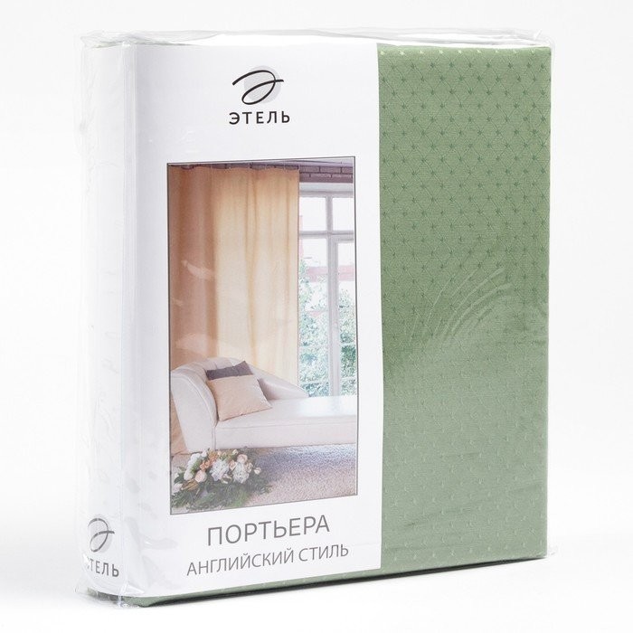 Штора портьерная «Этель» 130×280 см, Английский стиль SAGE светло-зелёный,100% п/э