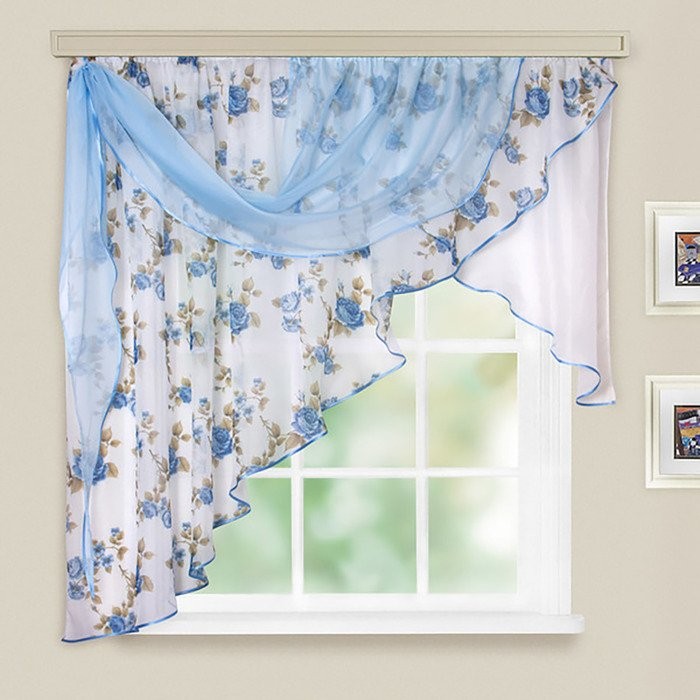 Комплект штор для кухни Иллюзия 300×150 см, голубой, левая, 100% п/э