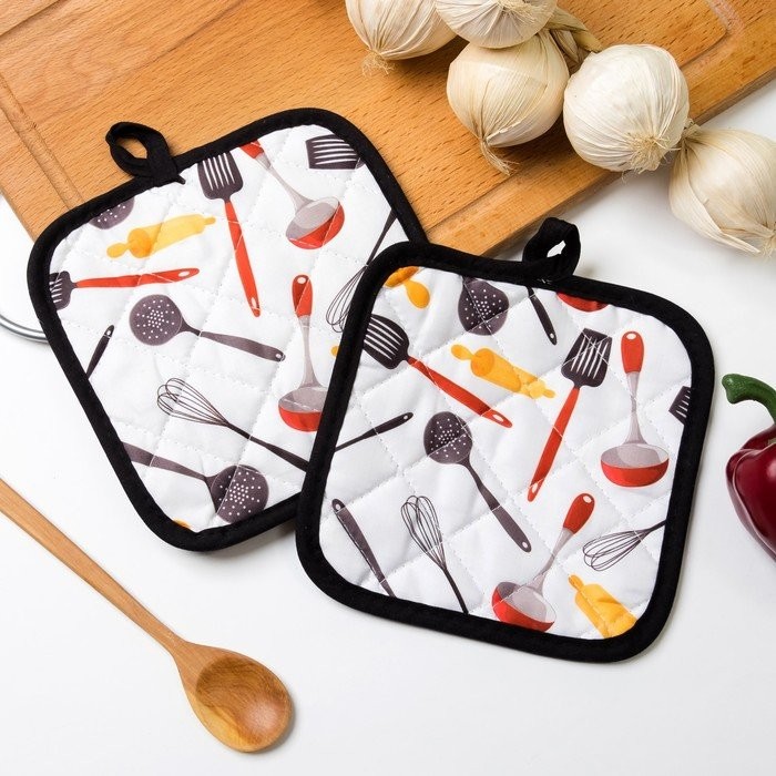 Кухонный набор Доляна «Поварешка», прихватка 16×16 см — 2 шт
