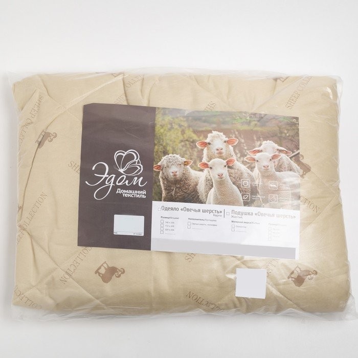 Одеяло Овечья шерсть 140×205 см, полиэфирное волокно 200 гр/м, пэ 100%